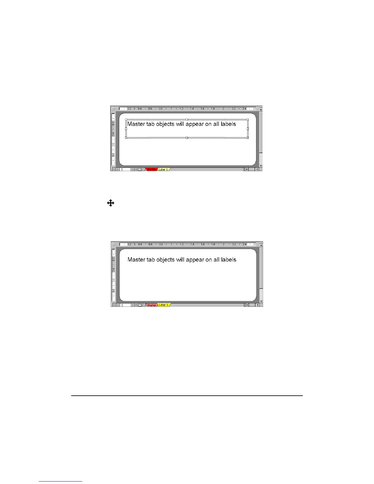 6. Type the following text in the text object: Master tab objects will appear on all labels.