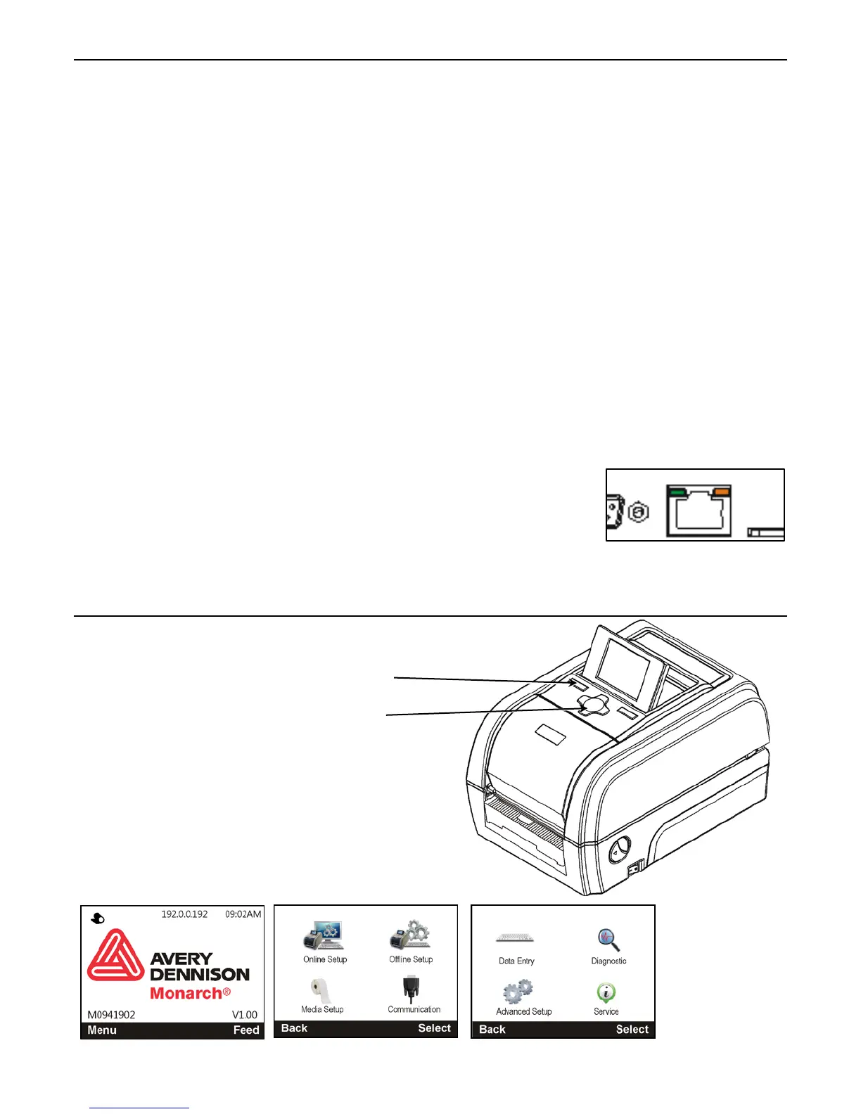 The printer’s display shows the IP address when a connection is