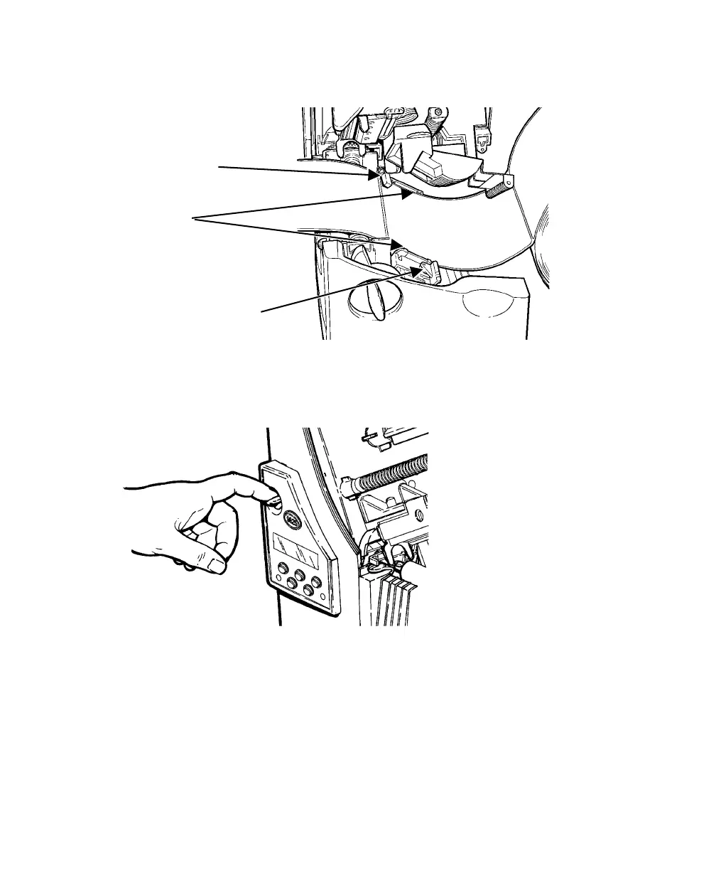 9. Hold the printhead assembly by the printhead tab while pressing down on