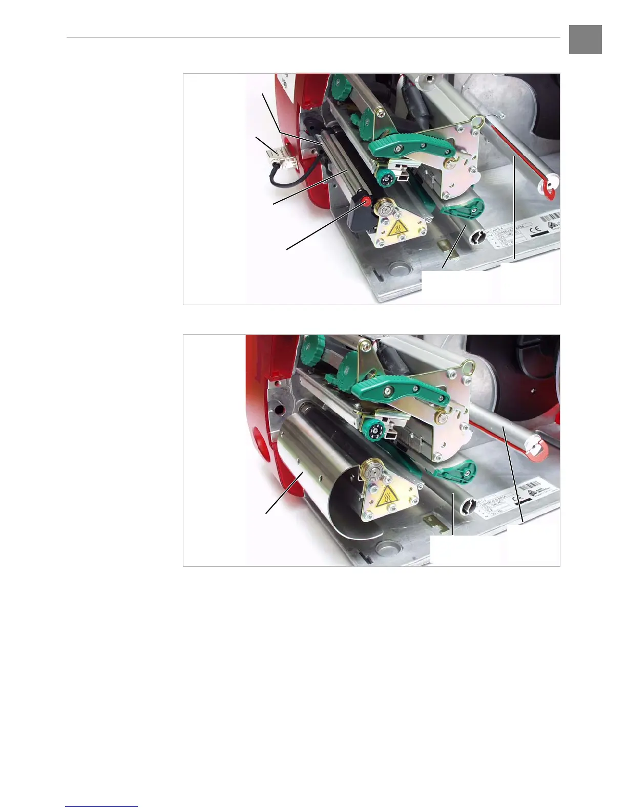 Fig. 7: Additional operating parts of the printer with internal liner takeup.
