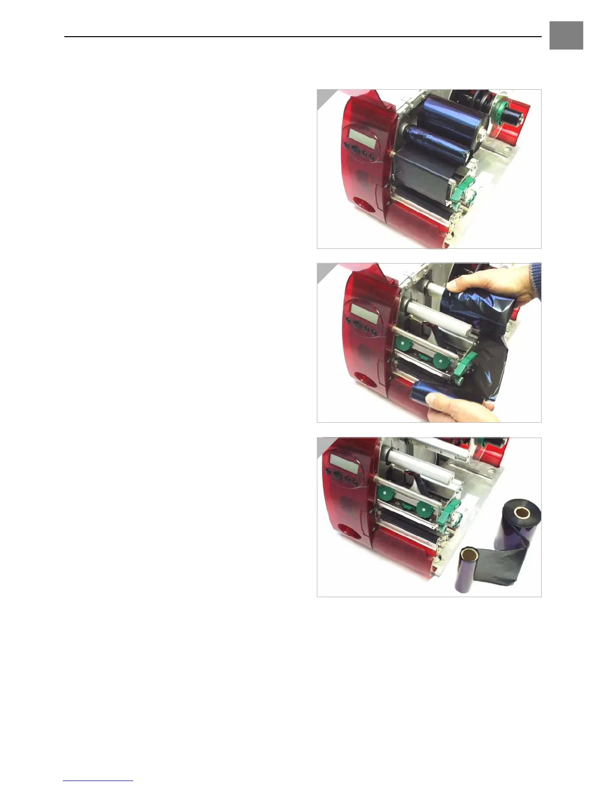 2. Remove both ribbon rolls from the ribbon