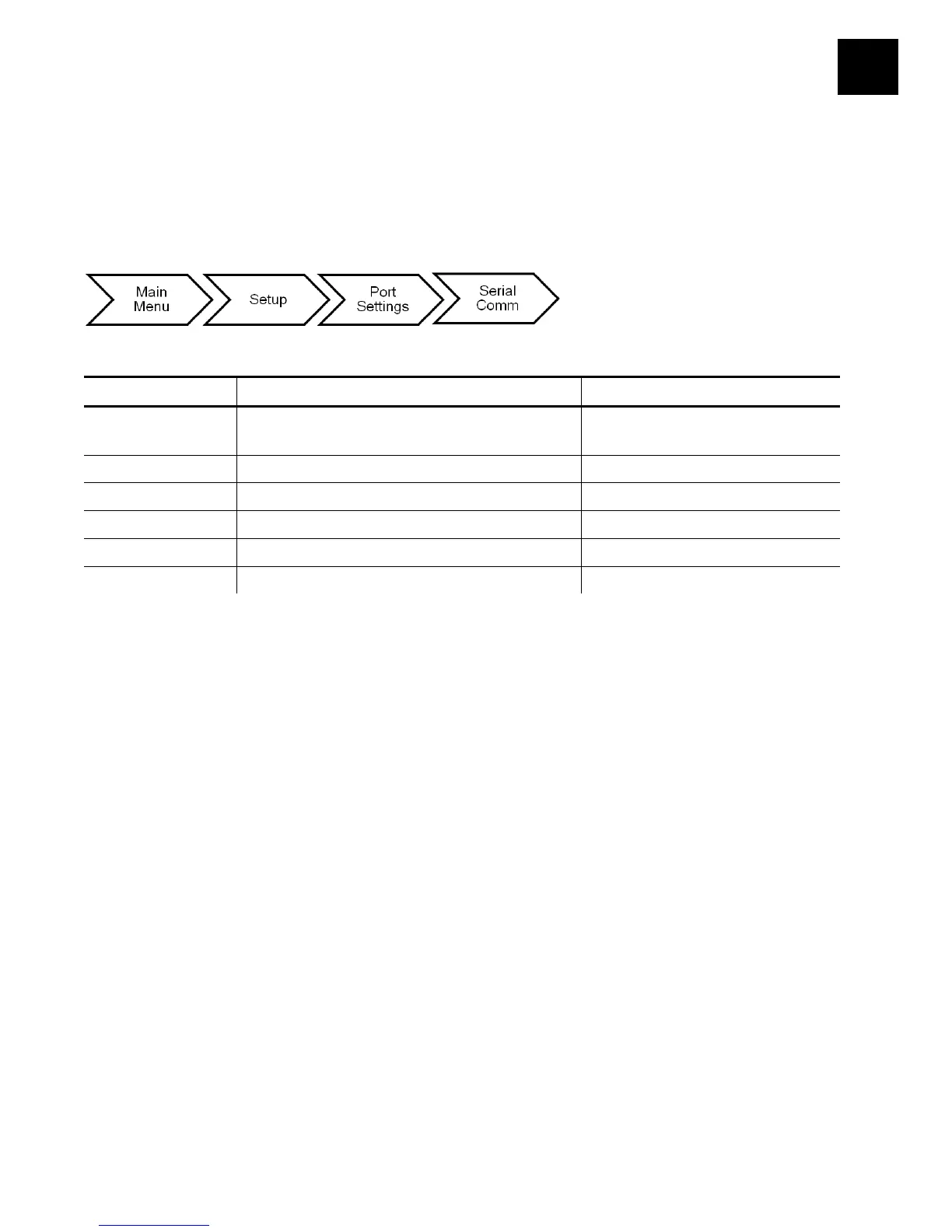 The serial communication values are in the table below.