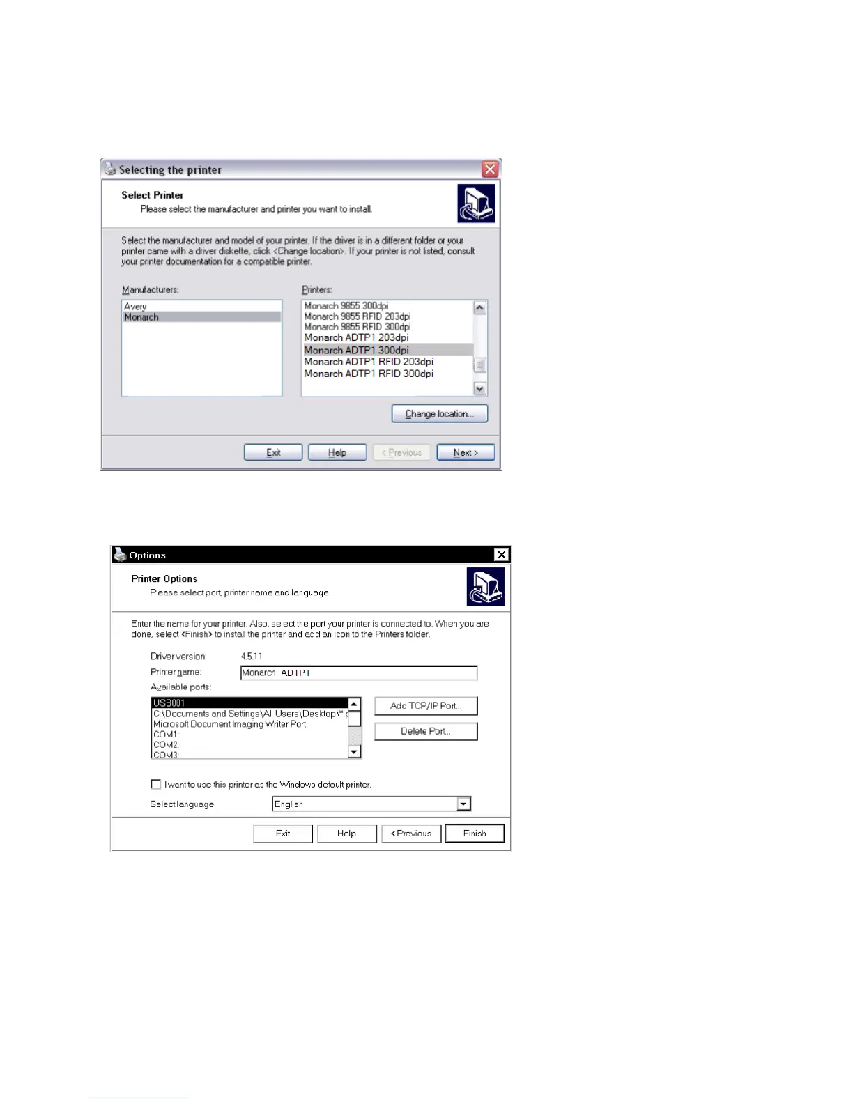 8. Select Monarch ADTP1 (203dpi or 300dpi based on your printhead) as the Printer.