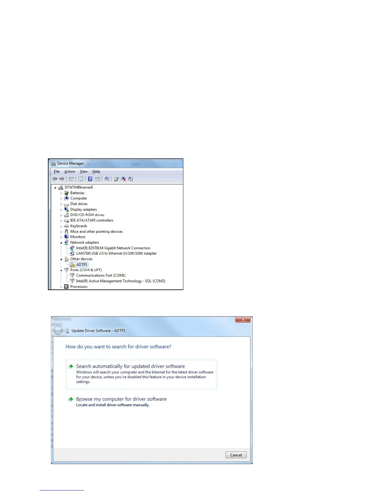 6. From Ports, USB port or Other devices, right click ADTP1 and select Update Driver