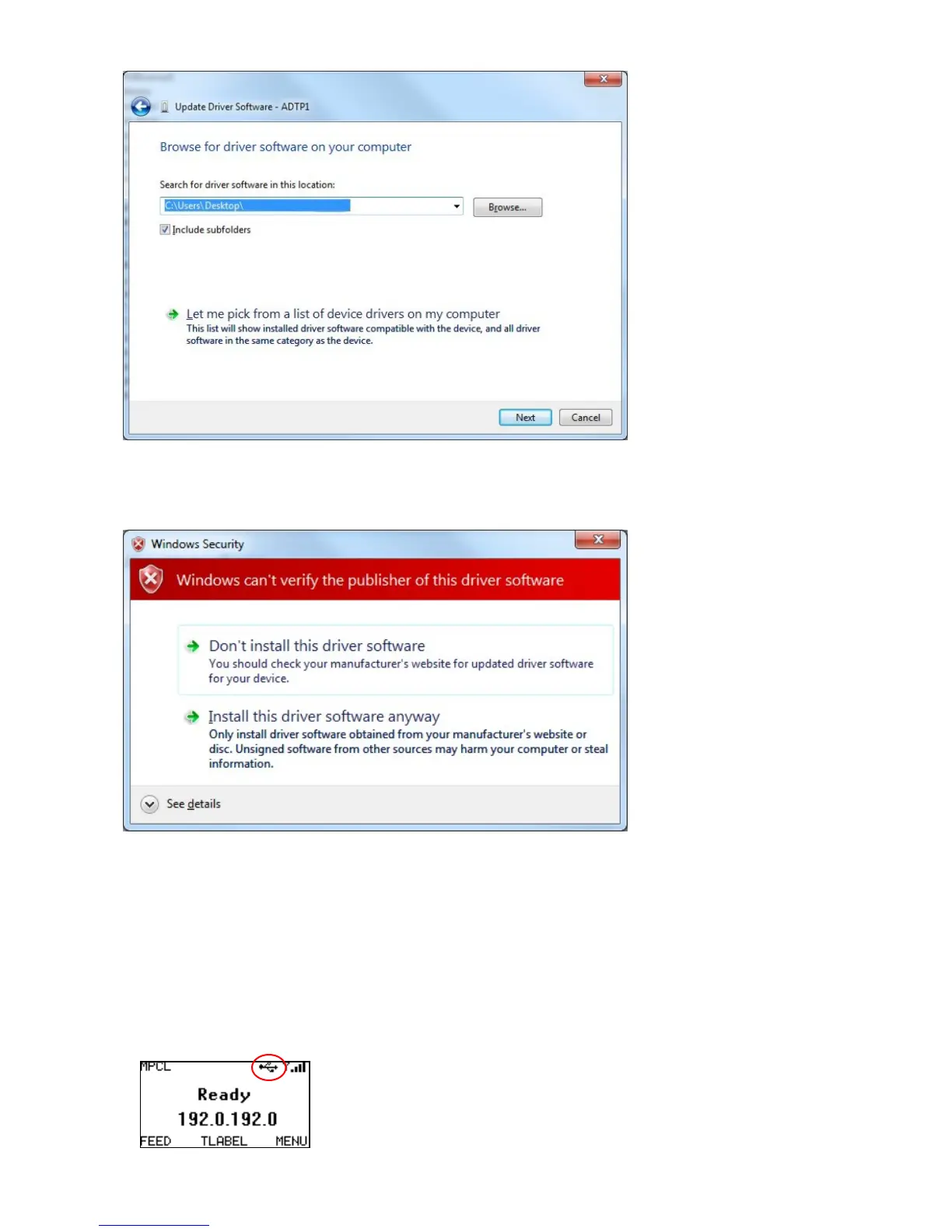 8. Click Browse and navigate to the folder where you saved ADTP1.inf.