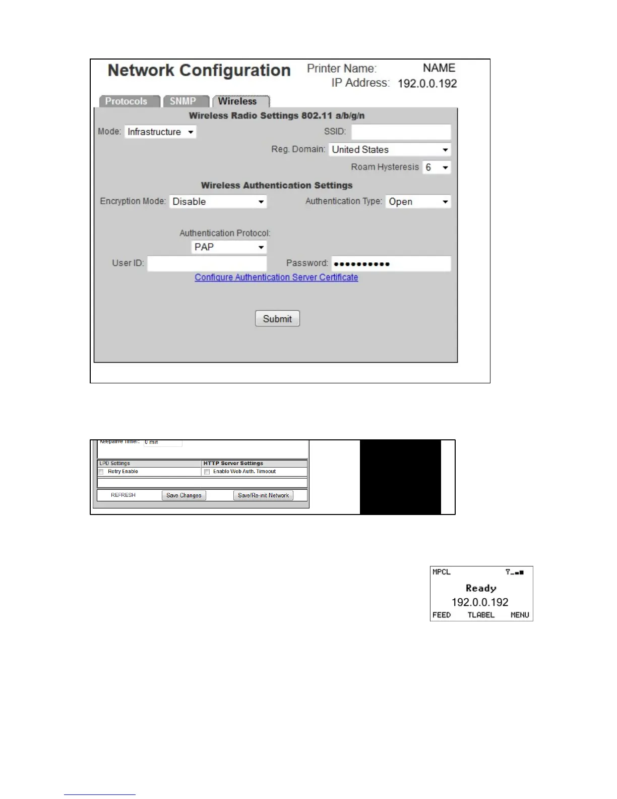 15. Once an IP Address appears, Web back into the printer. Type access for the