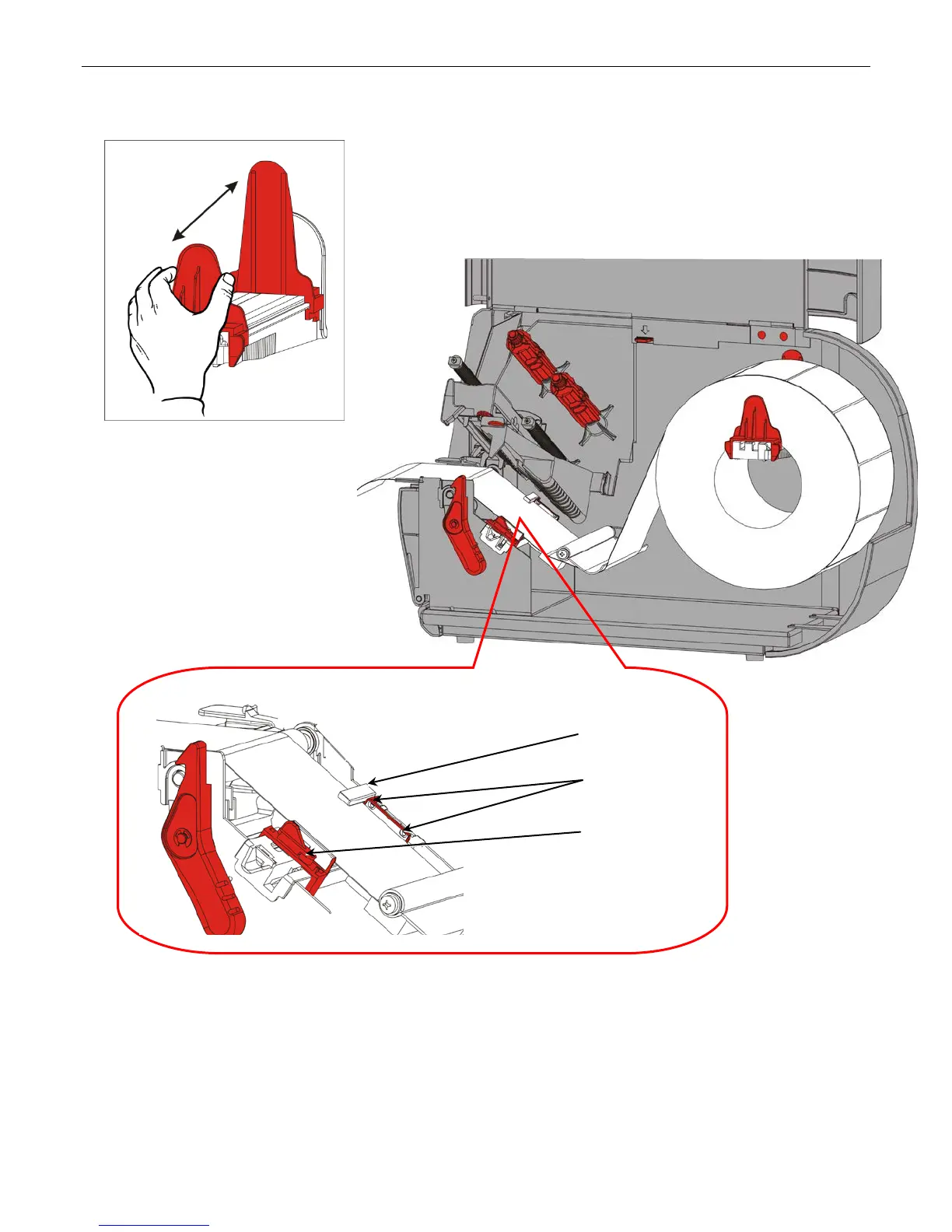 3. Adjust the supply guides so they barely touch the supply. Turn the supply lever up to