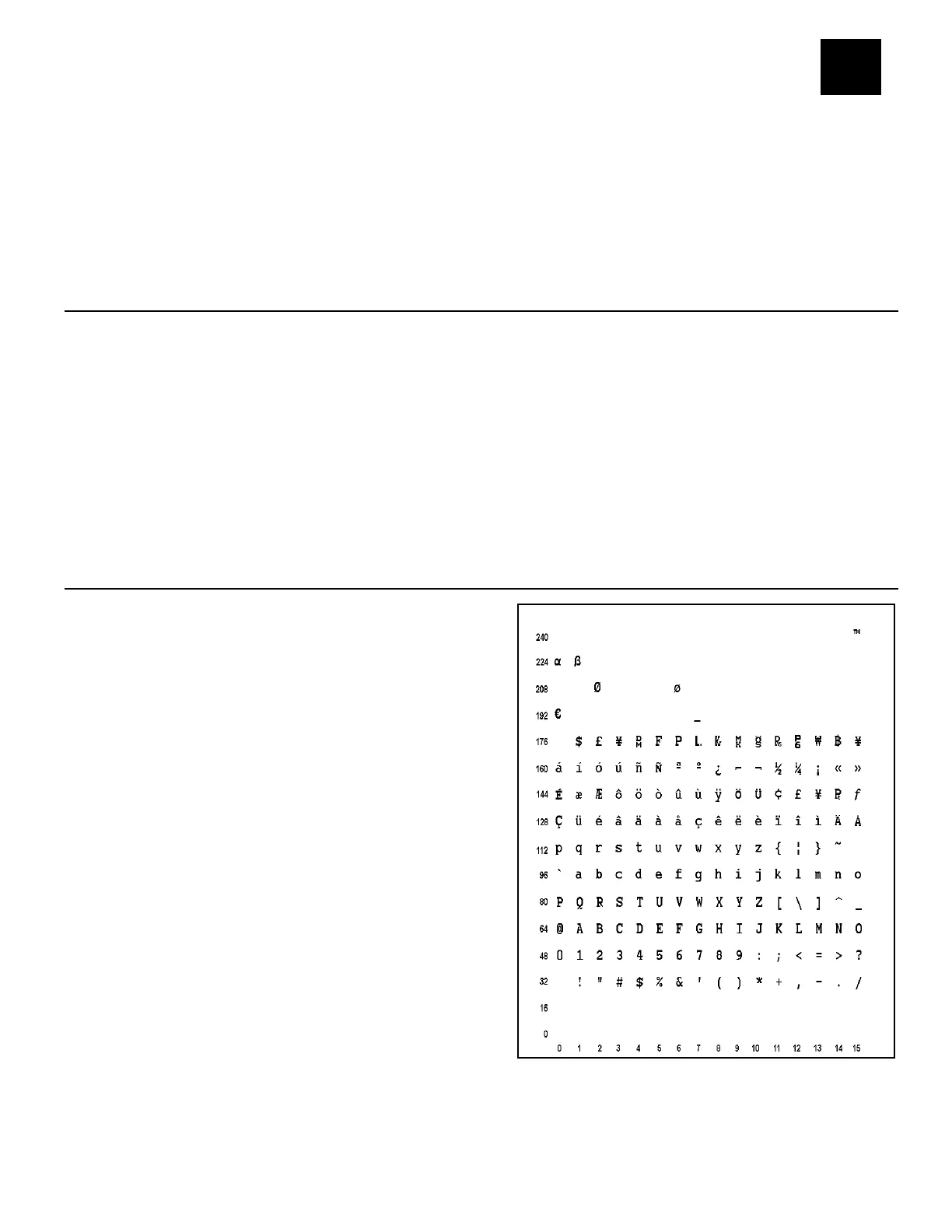 manual. Refer to the Internet for a listing of the characters in each code page. Search on a
