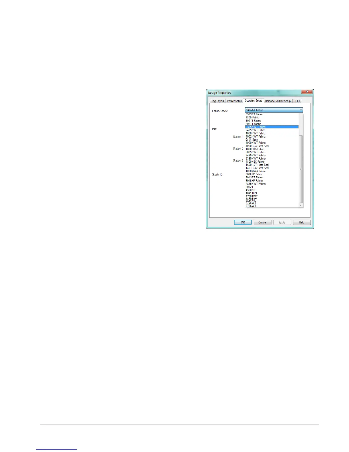 under the “Supplies Setup” tab, the operator selects