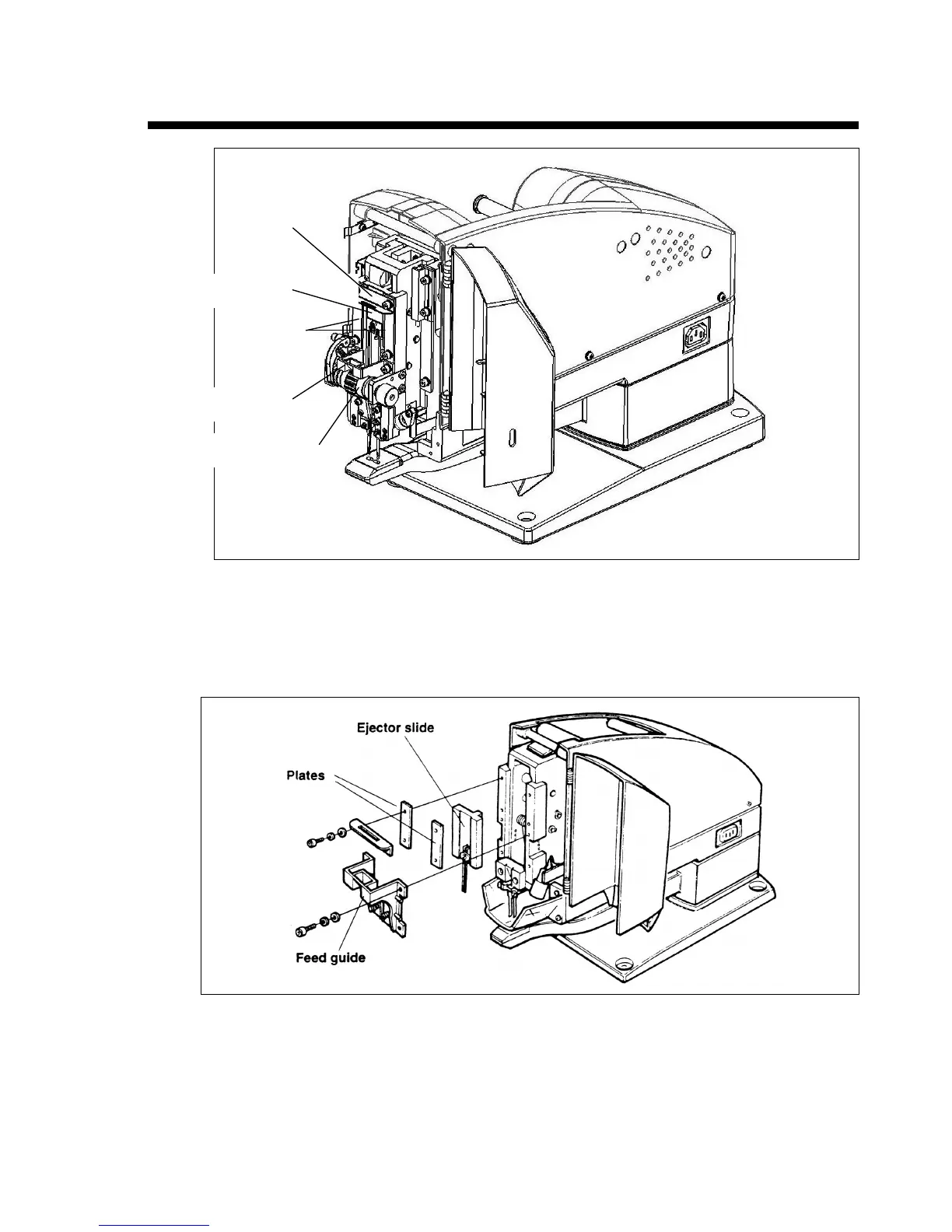 4. Remove the four screws holding the feed guide and then remove the feed guide.