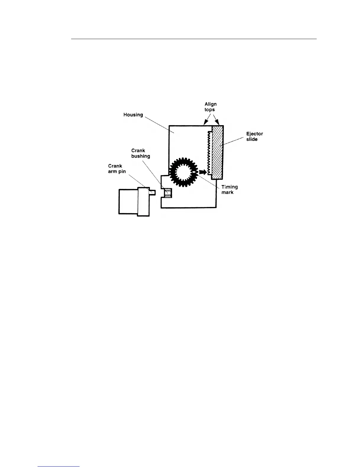 5. Align the white timing mark with the bottom tooth of the ejector slide when