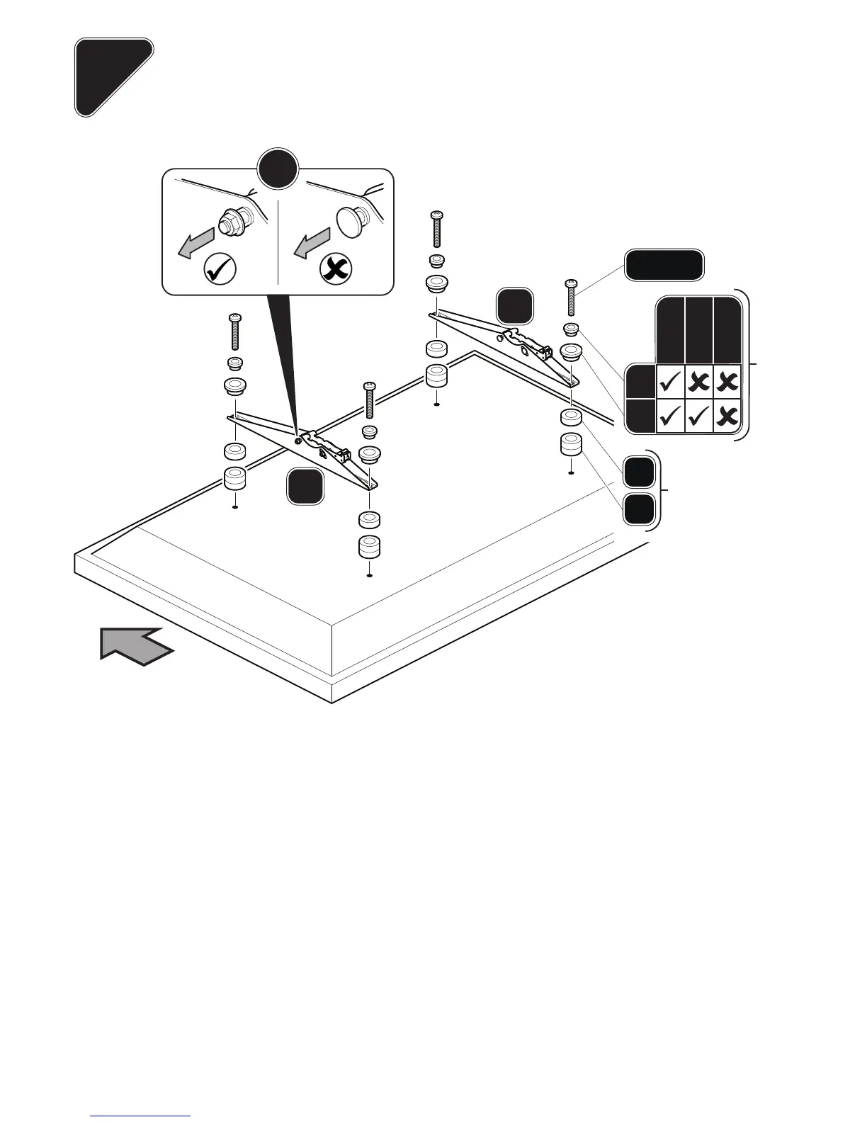 Coloque los soportes a la parte posterior de su TV usando la combinación adecuada de tornillo, reductor y espaciador.