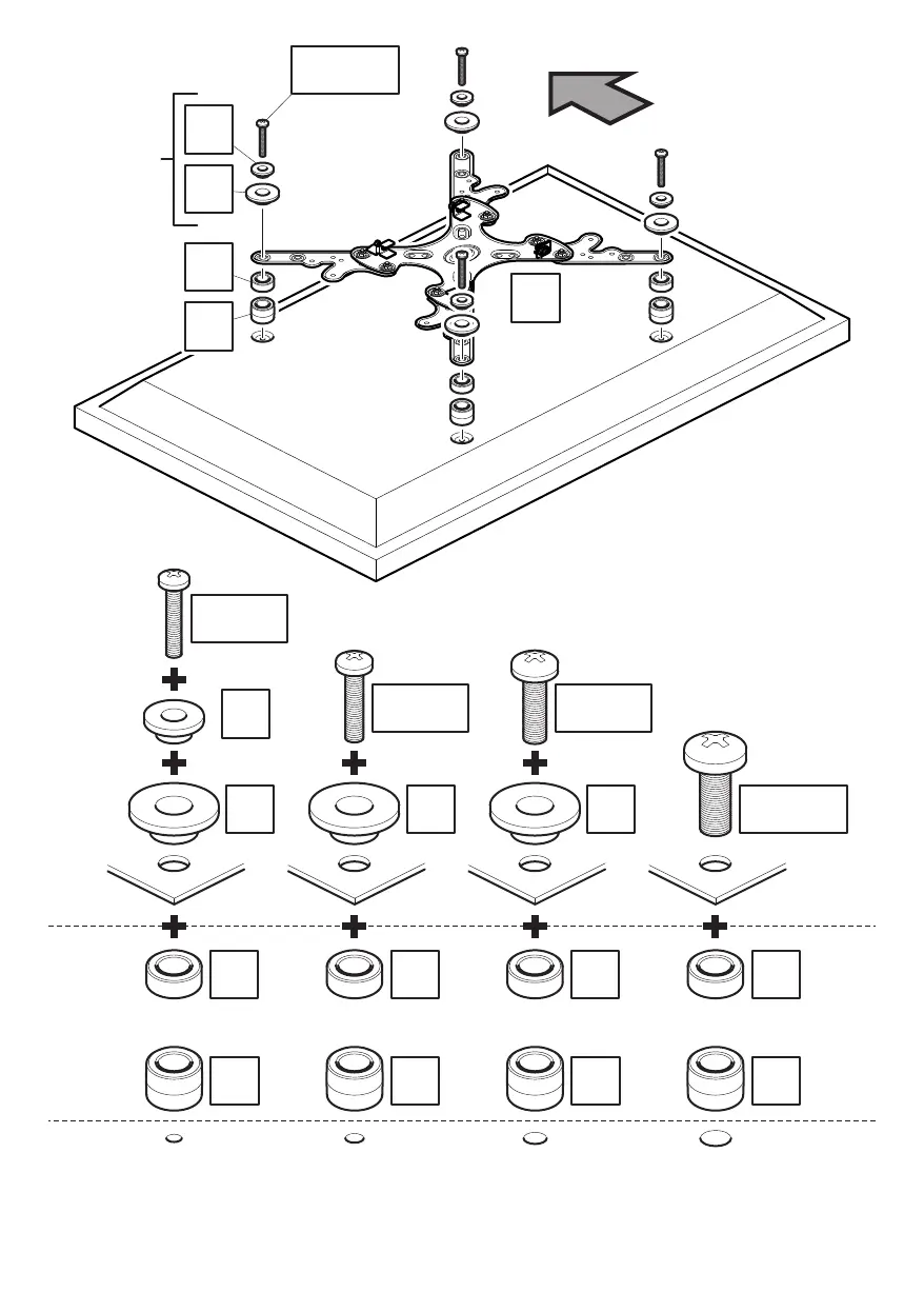 Coloque los soportes a la parte posterior de su TV usando la combinación adecuada de
