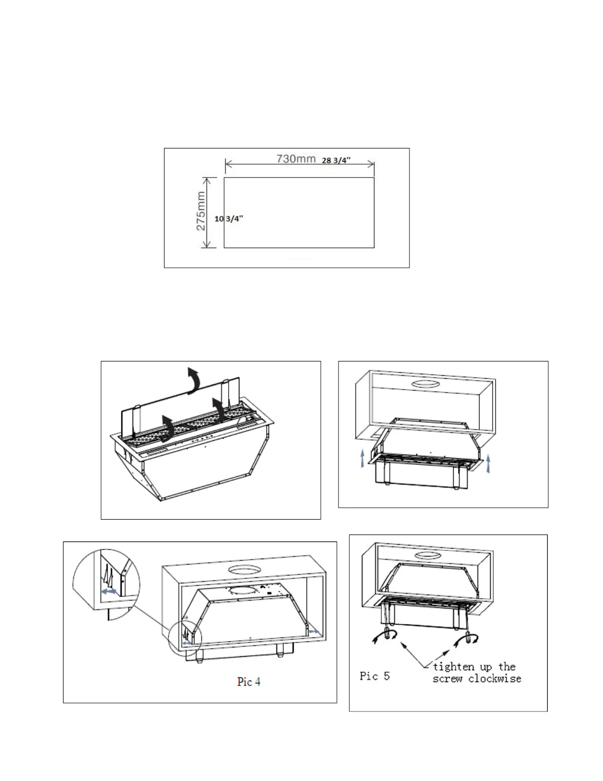 1. Drillahole28¾’’X10¾’’(730X275mm).SEEPic1.inthecabinet,Makesuretheedge oftheholeis1.4’’