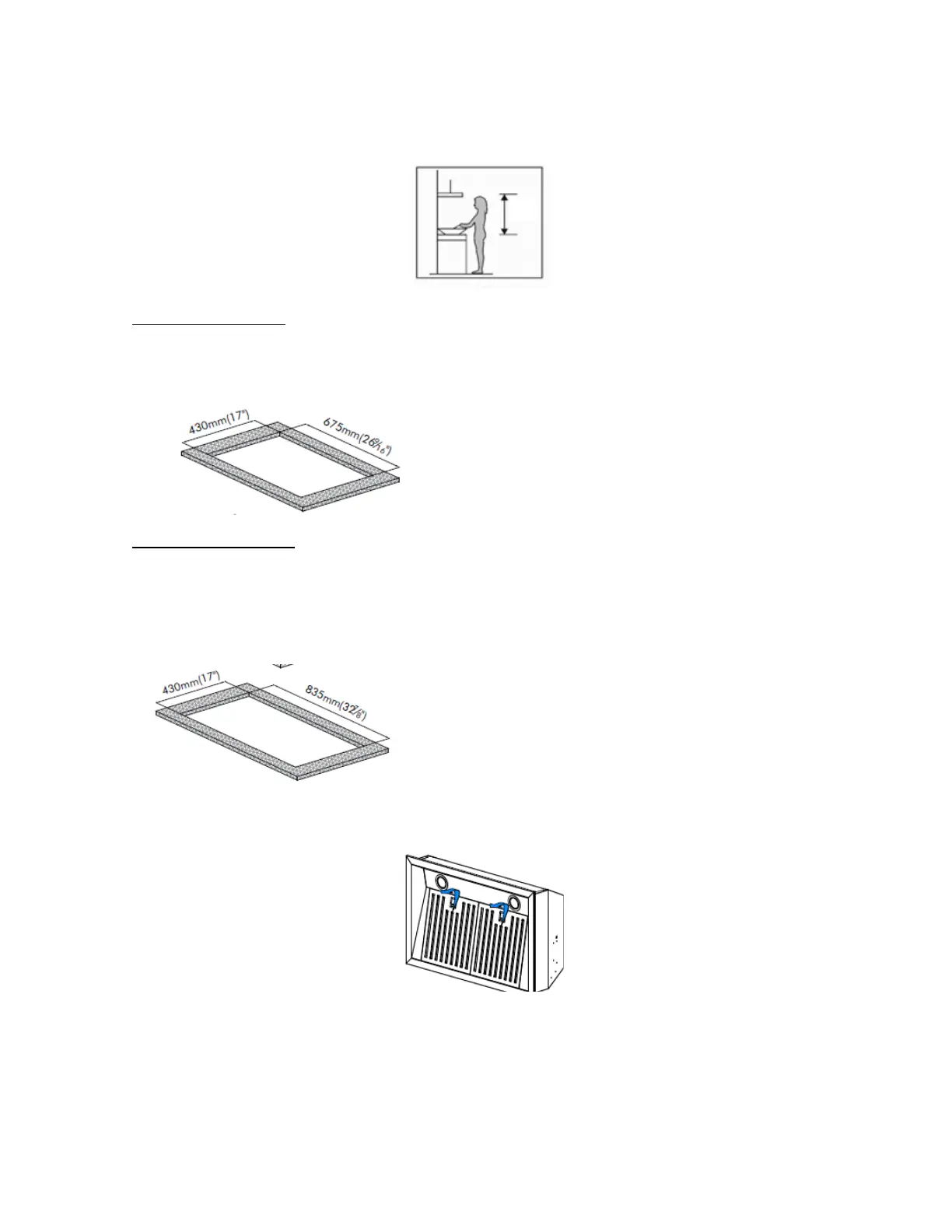 1. Pour une performance idéale la hotte doit être positionné à une distance de 28 à 30" au-dessus de la