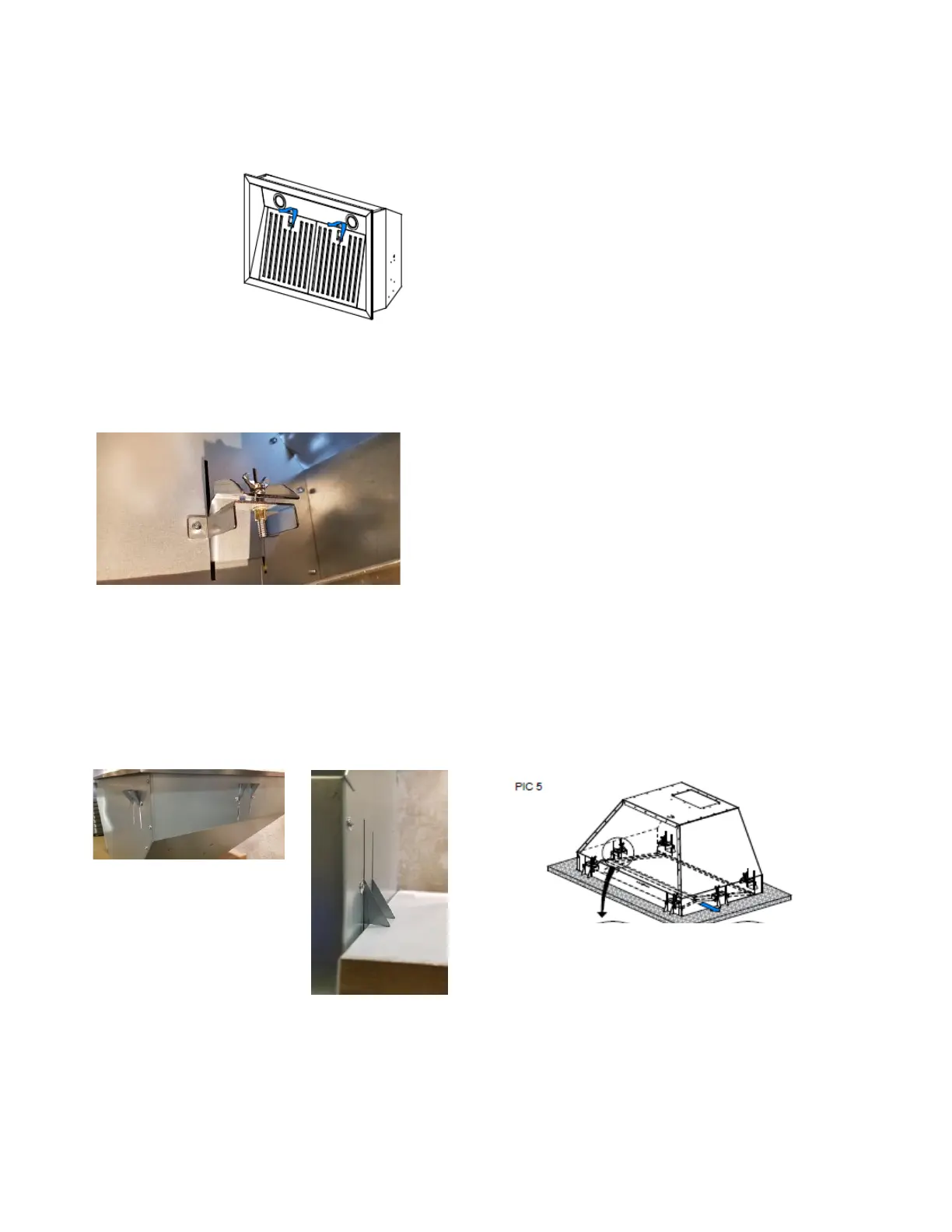 5. Placez la hotte dans l'armoire, APPUYEZ la boucle sur le côté extérieur de la hotte et serrez l’écrou à papillons