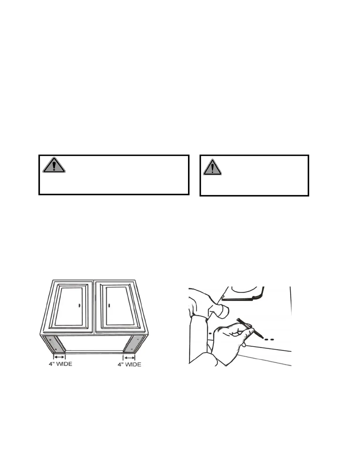 Forinstallingunderthecabinetwithrecessedbottom,attach4’’widewoodfillerstrips(notprovided)on