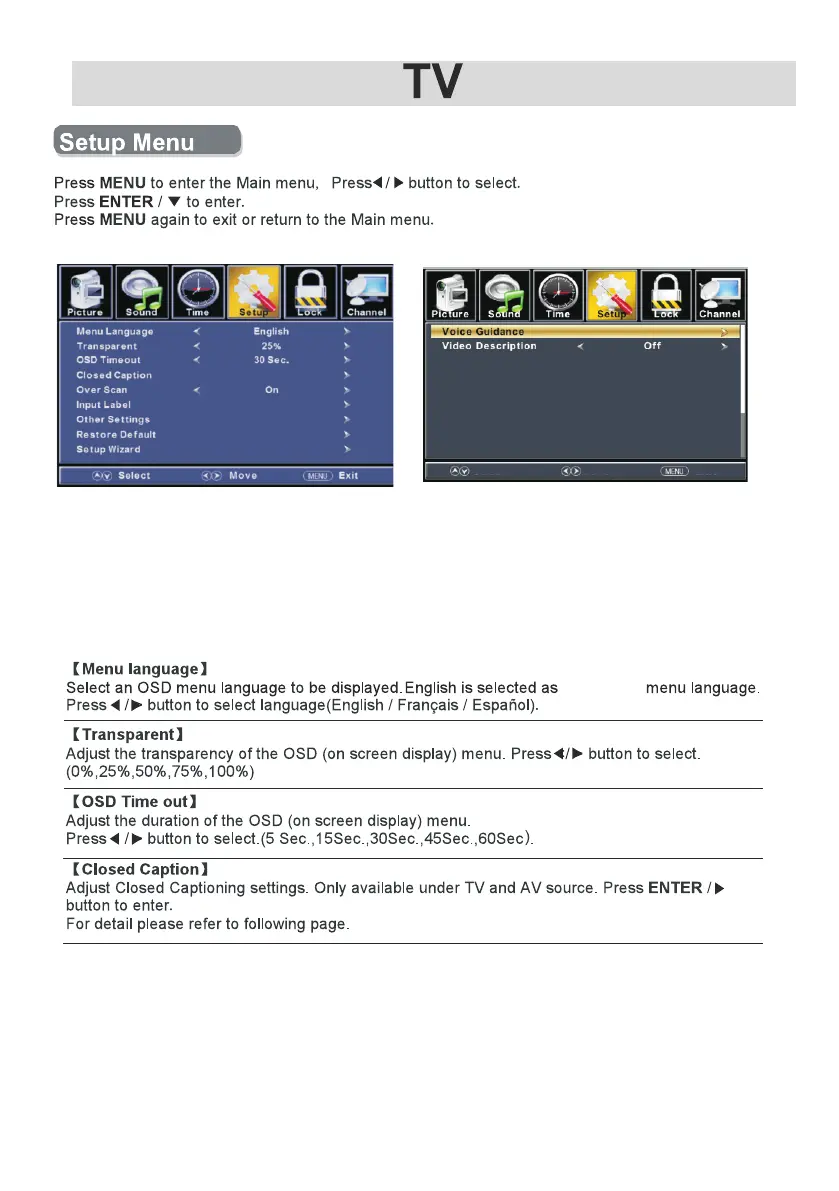 Restore Default / Setup Wizard/Voice Guidance/Video Description.