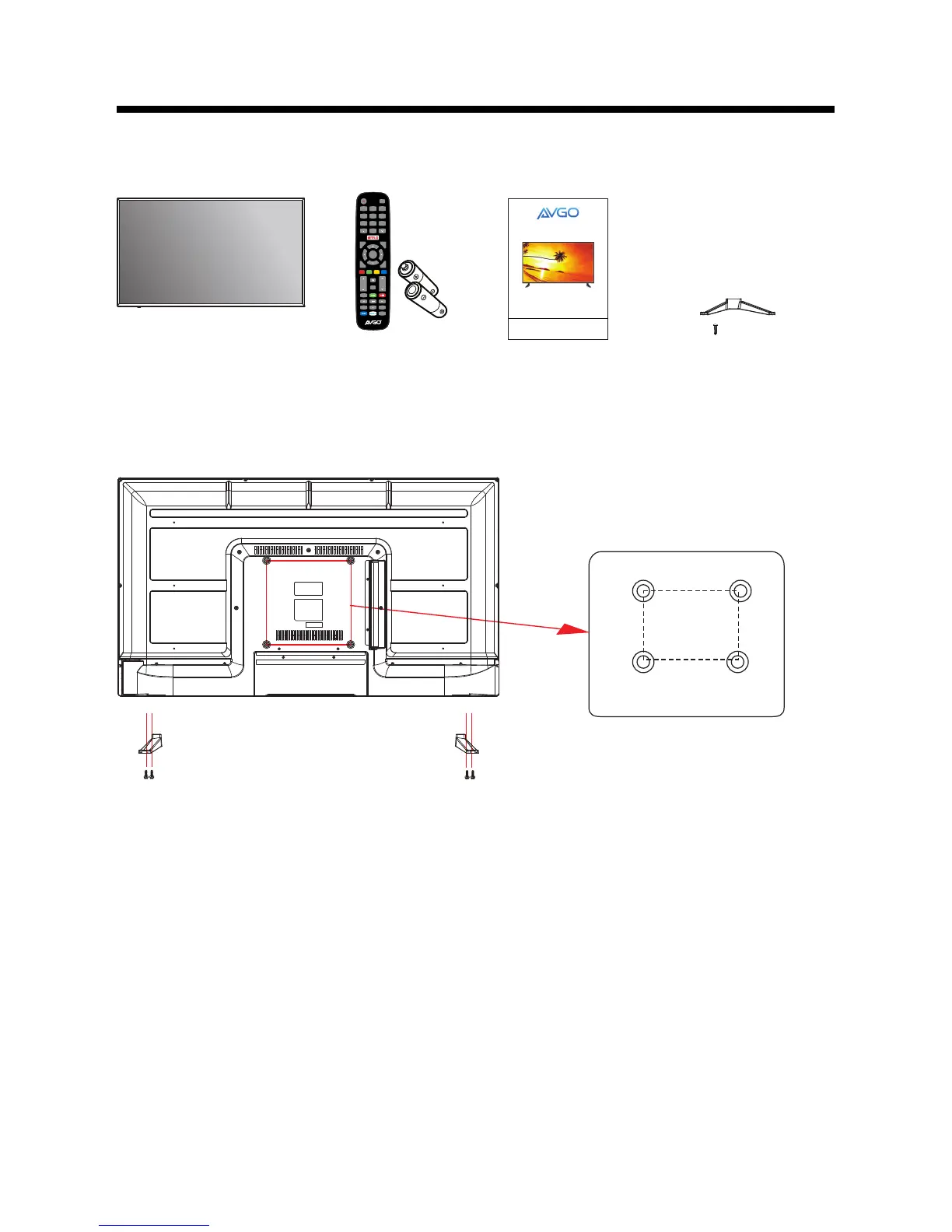 (NOT SUPPLIED). The VESA mounting pattern is 200 x 200 mm. Remove the screws