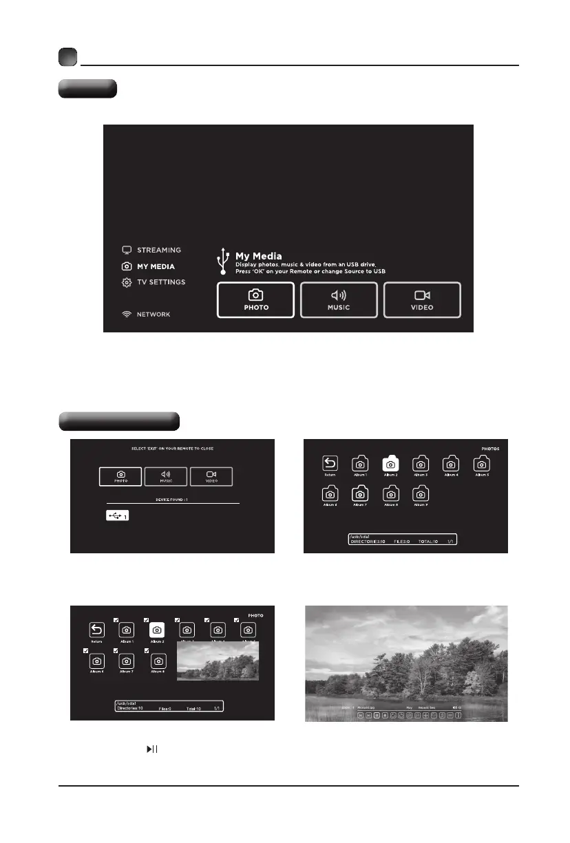 highlight MY MEDIA and press OKtoconrm.SelectamongPhotos,Musicand