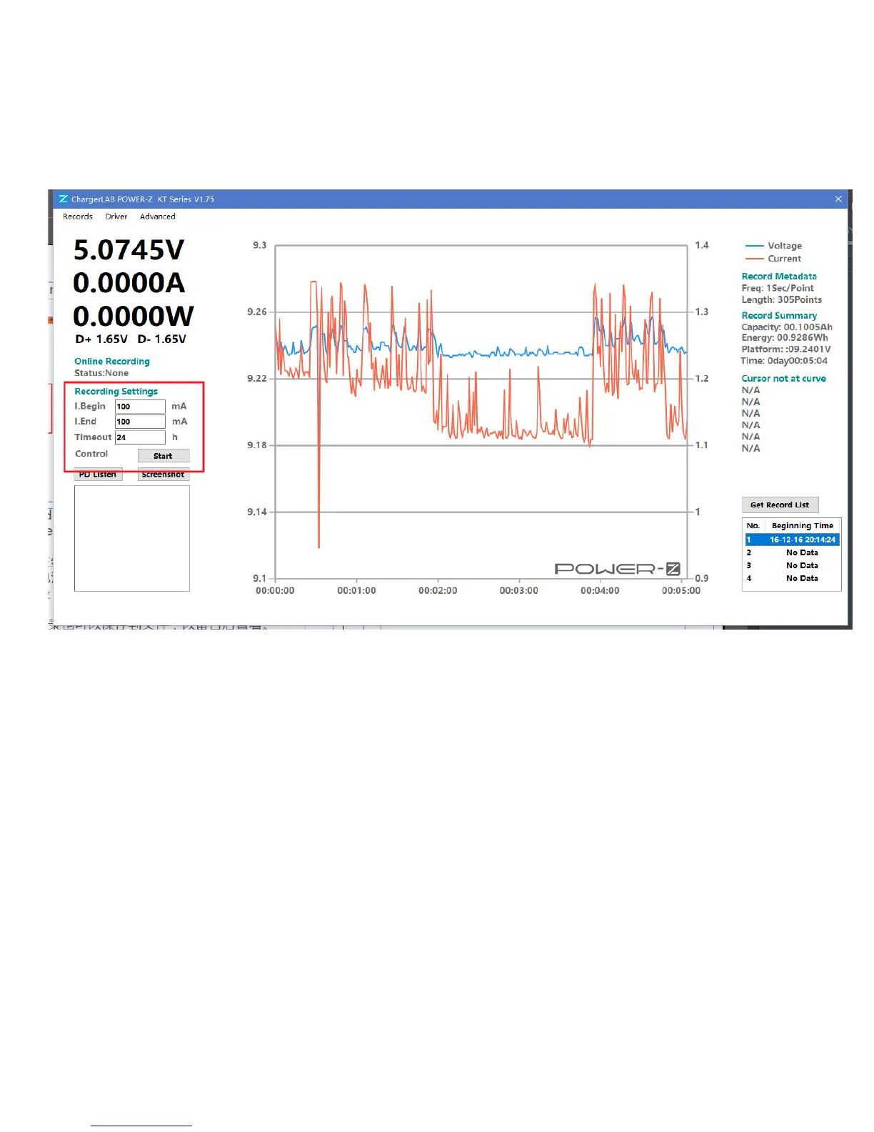 timeout. Then click "Start" button to start recording.