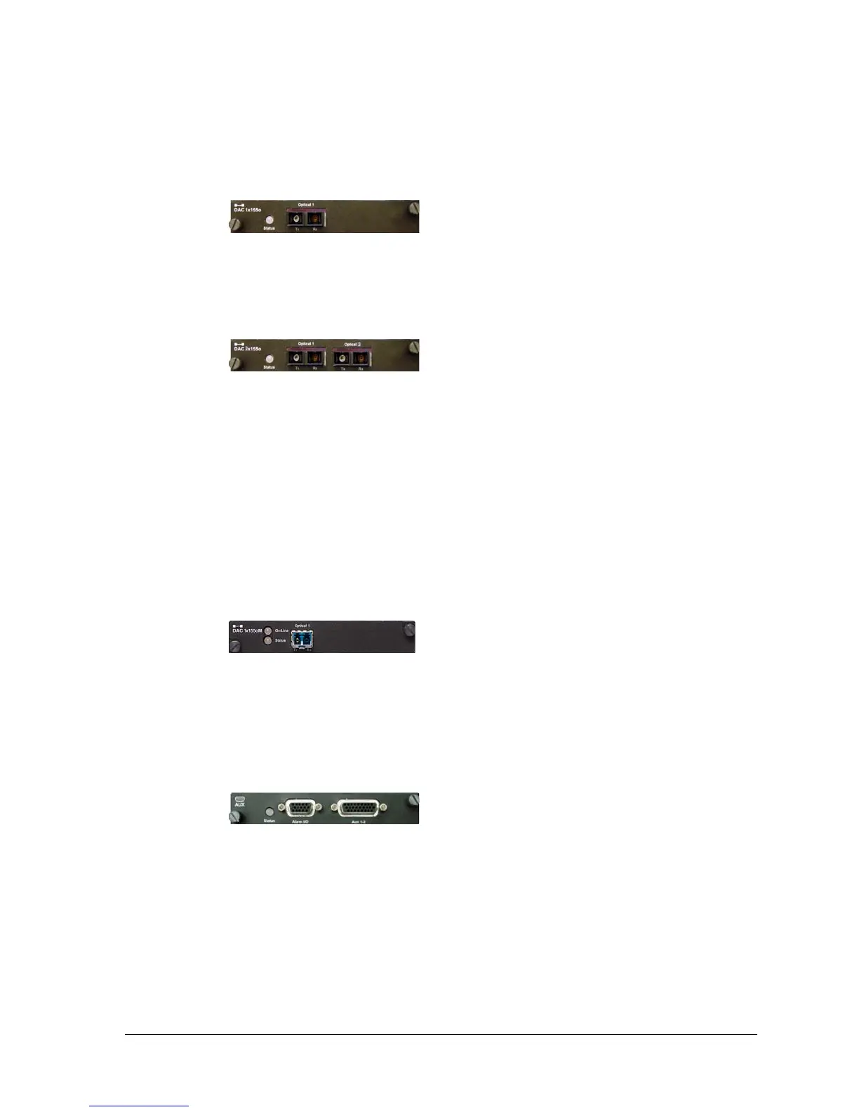 DAC 1x155o supports one OC3 single-mode optical tributary on SC connectors.
