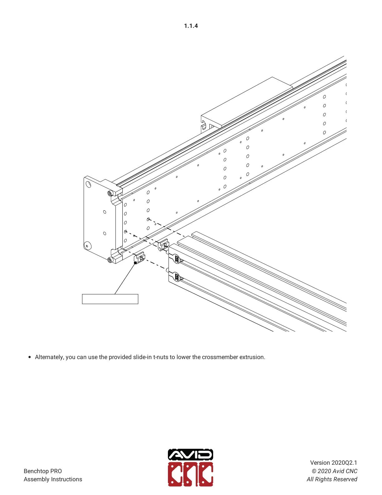 Alternately, you can use the provided slide-in t-nuts to lower the crossmember extrusion.
