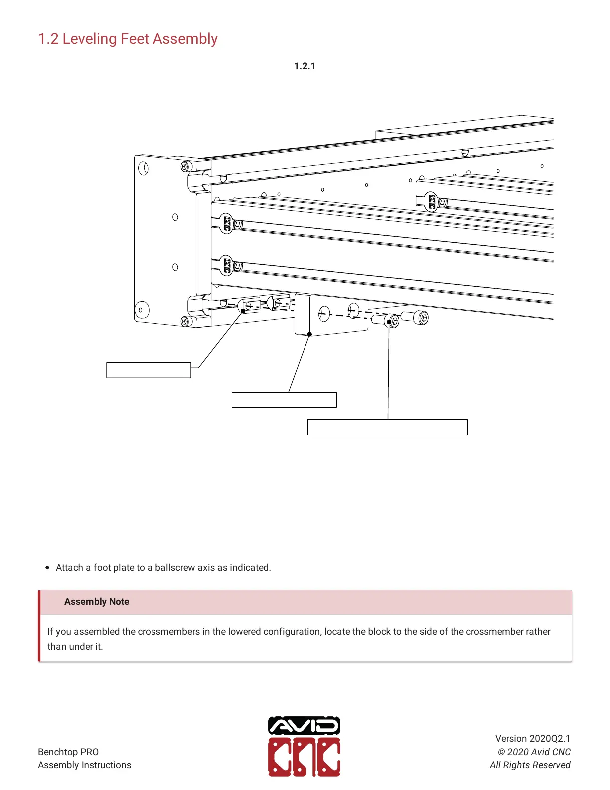 If you assembled the crossmembers in the lowered configuration, locate the block to the side of the crossmember rather