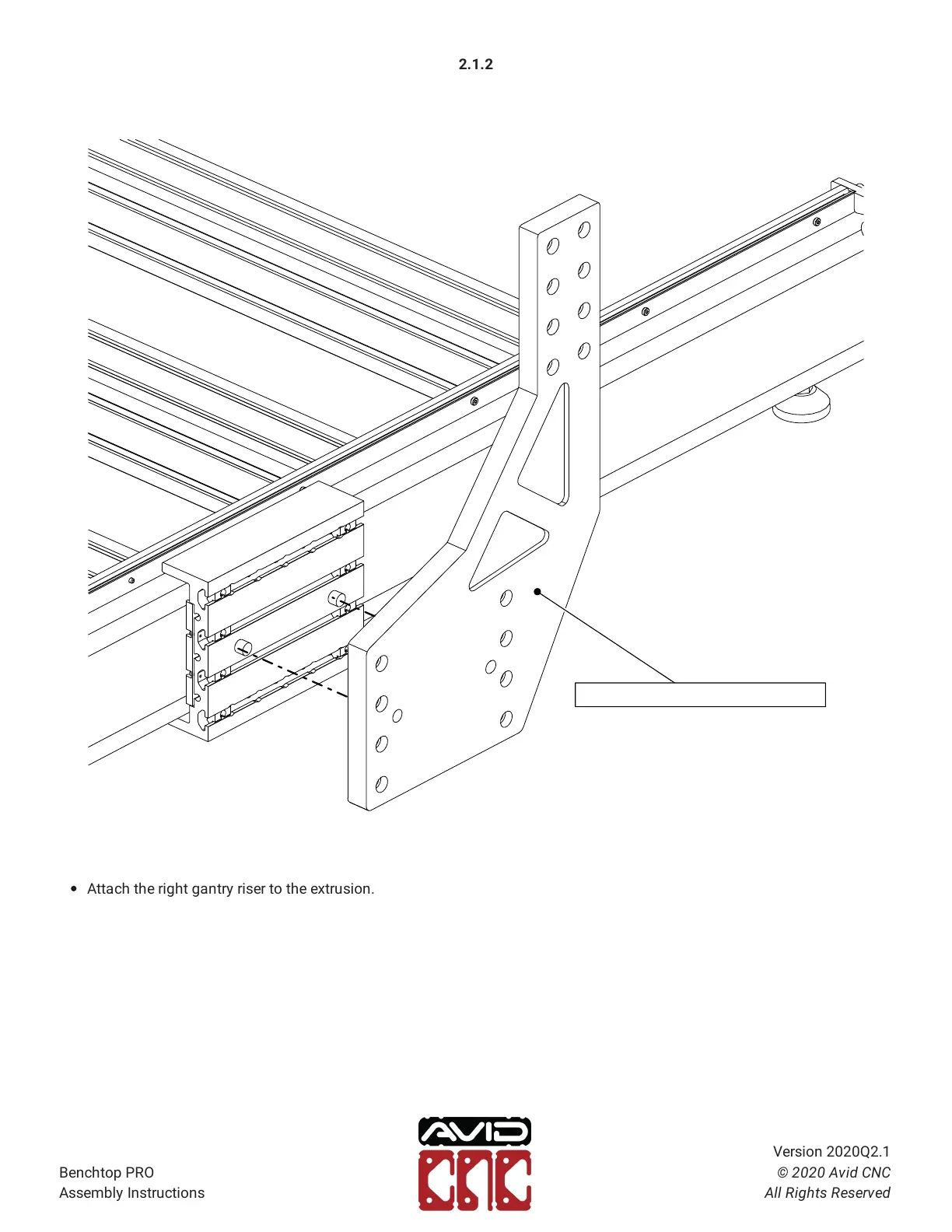 Attach the right gantry riser to the extrusion.