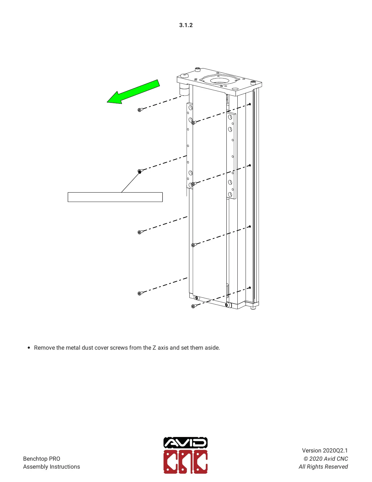 Remove the metal dust cover screws from the Z axis and set them aside.