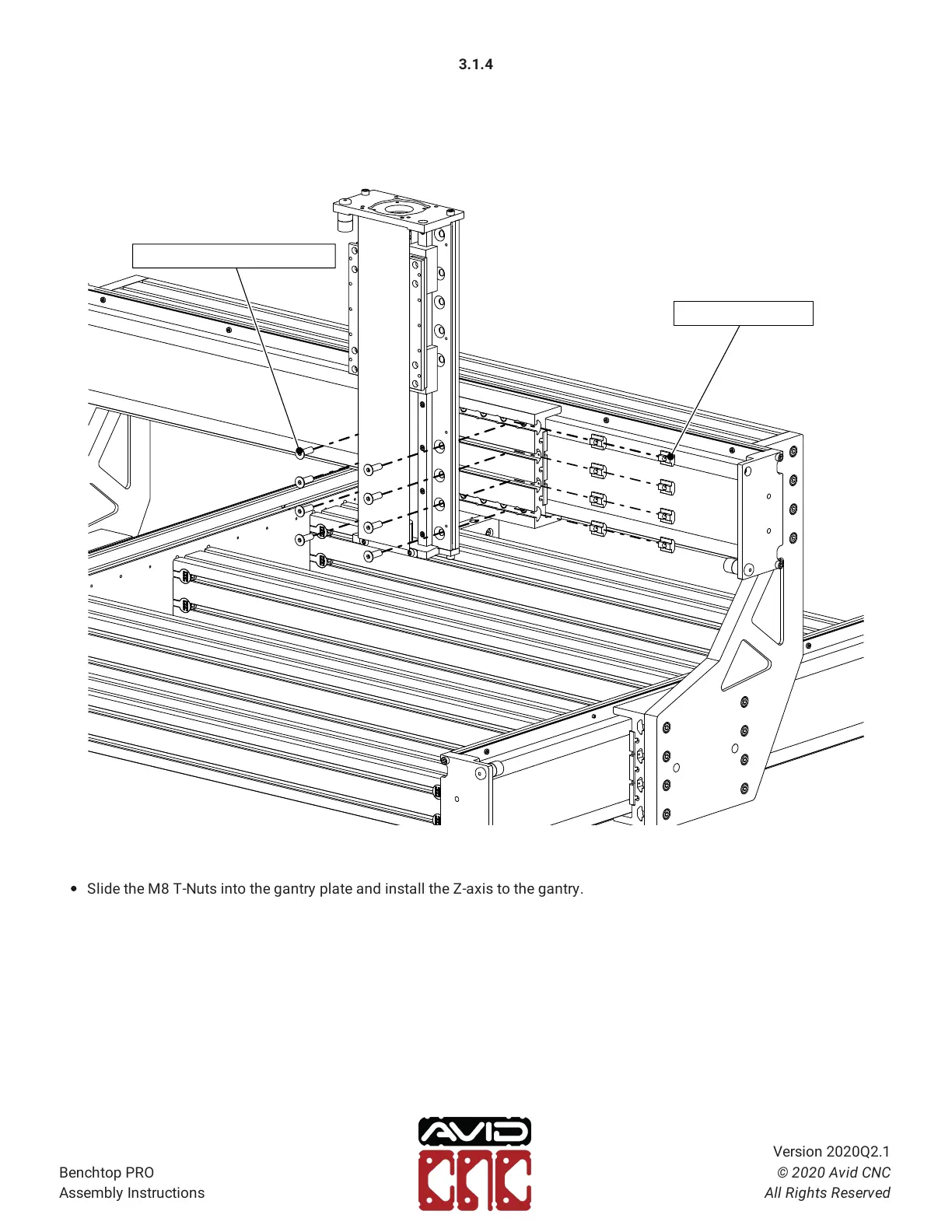 Slide the M8 T-Nuts into the gantry plate and install the Z-axis to the gantry.