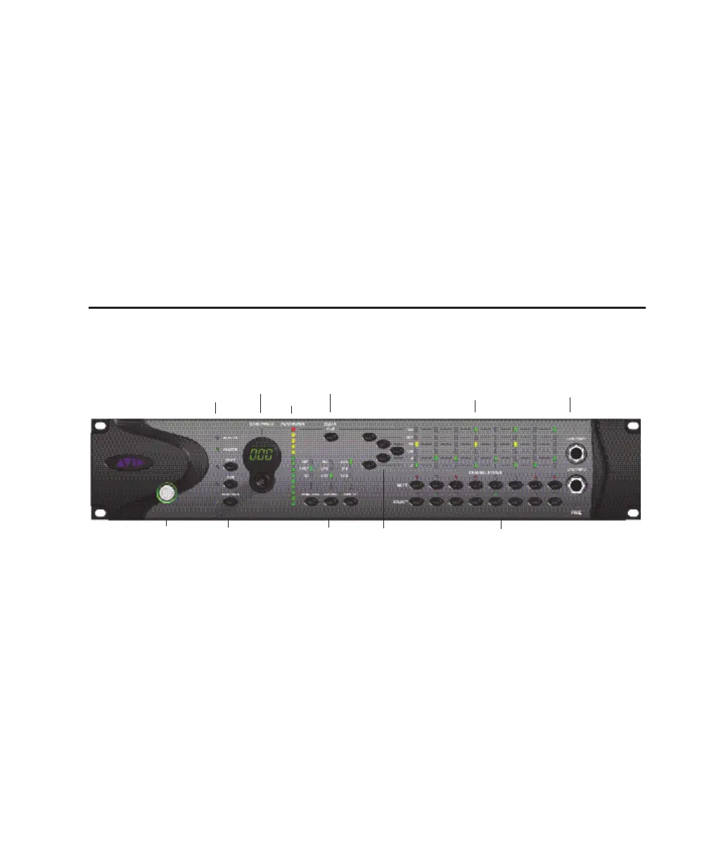 Pro Tools | PRE has the following front panel switches, indicators, and connectors: