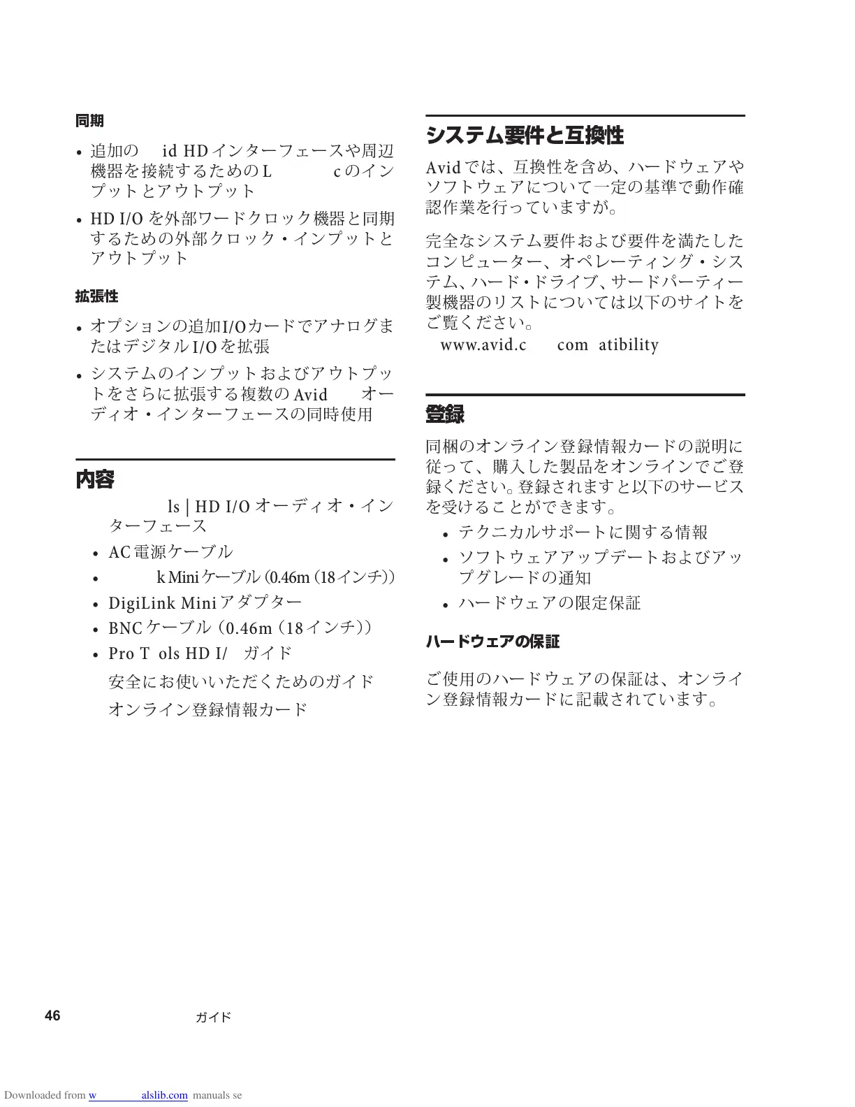 Avid Technology HD I/O - Chapter 8; • Pro Tools | HD I;O; 登 録