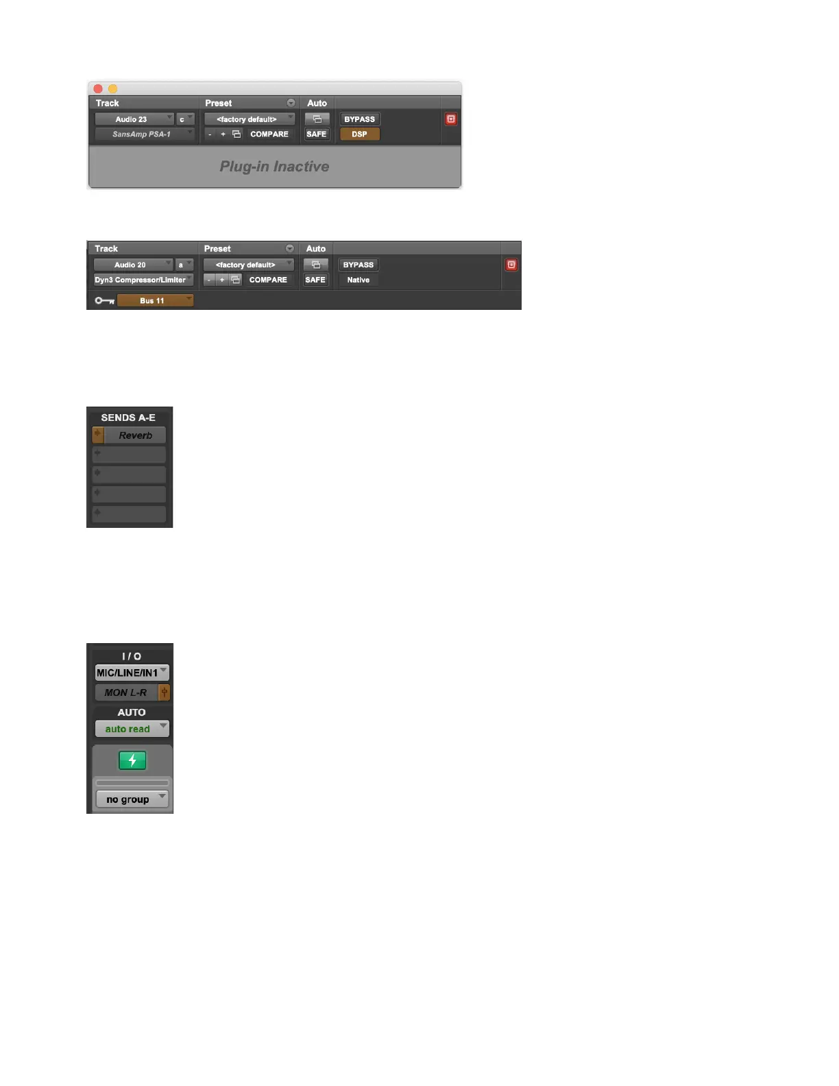 When a Send is made inactive due to insufficient DSP resources, the Send selector appears dark orange and any text is italicized.