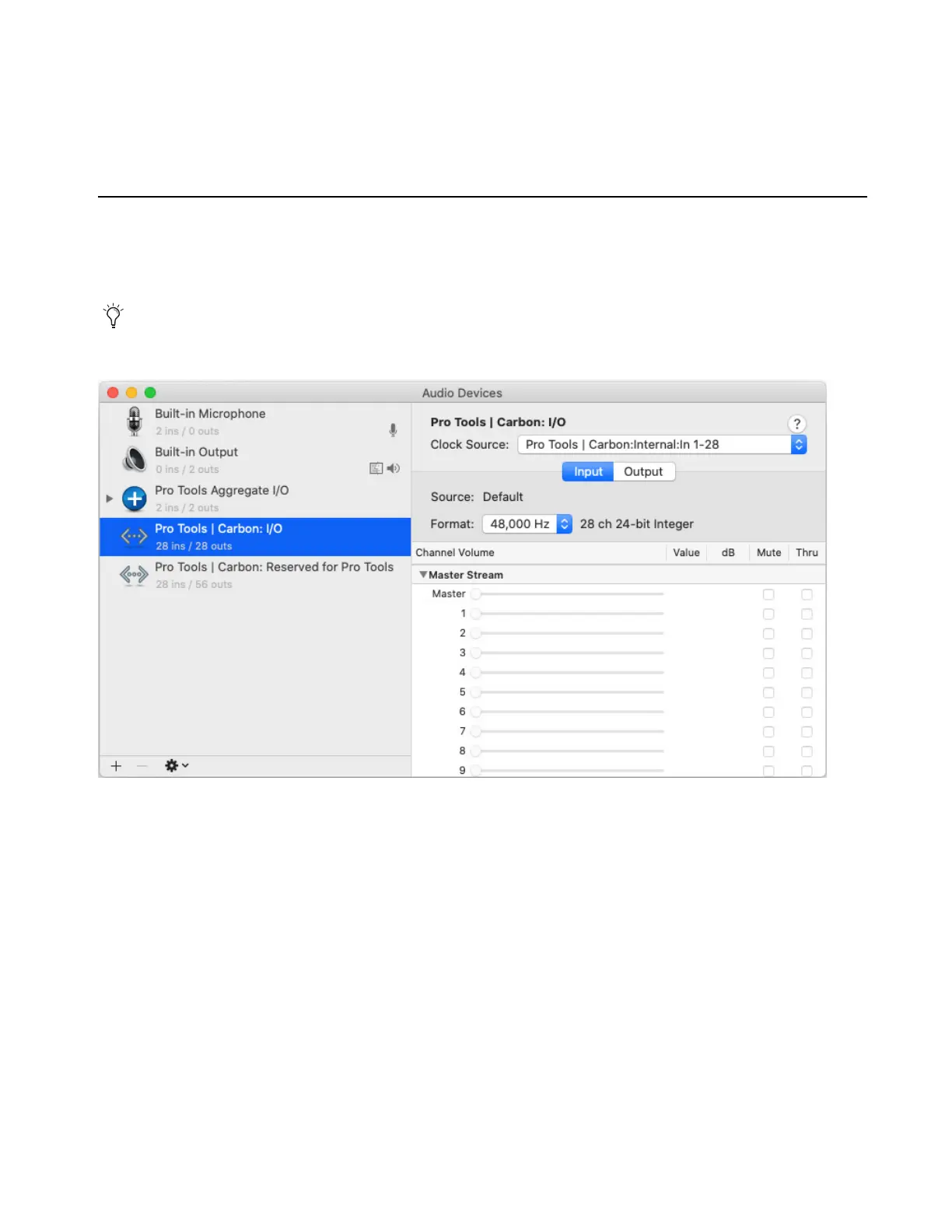 When using Pro Tools | Carbon with third-party Core Audio applications or for macOS system audio, the Pro Tools | Carbon: I/O