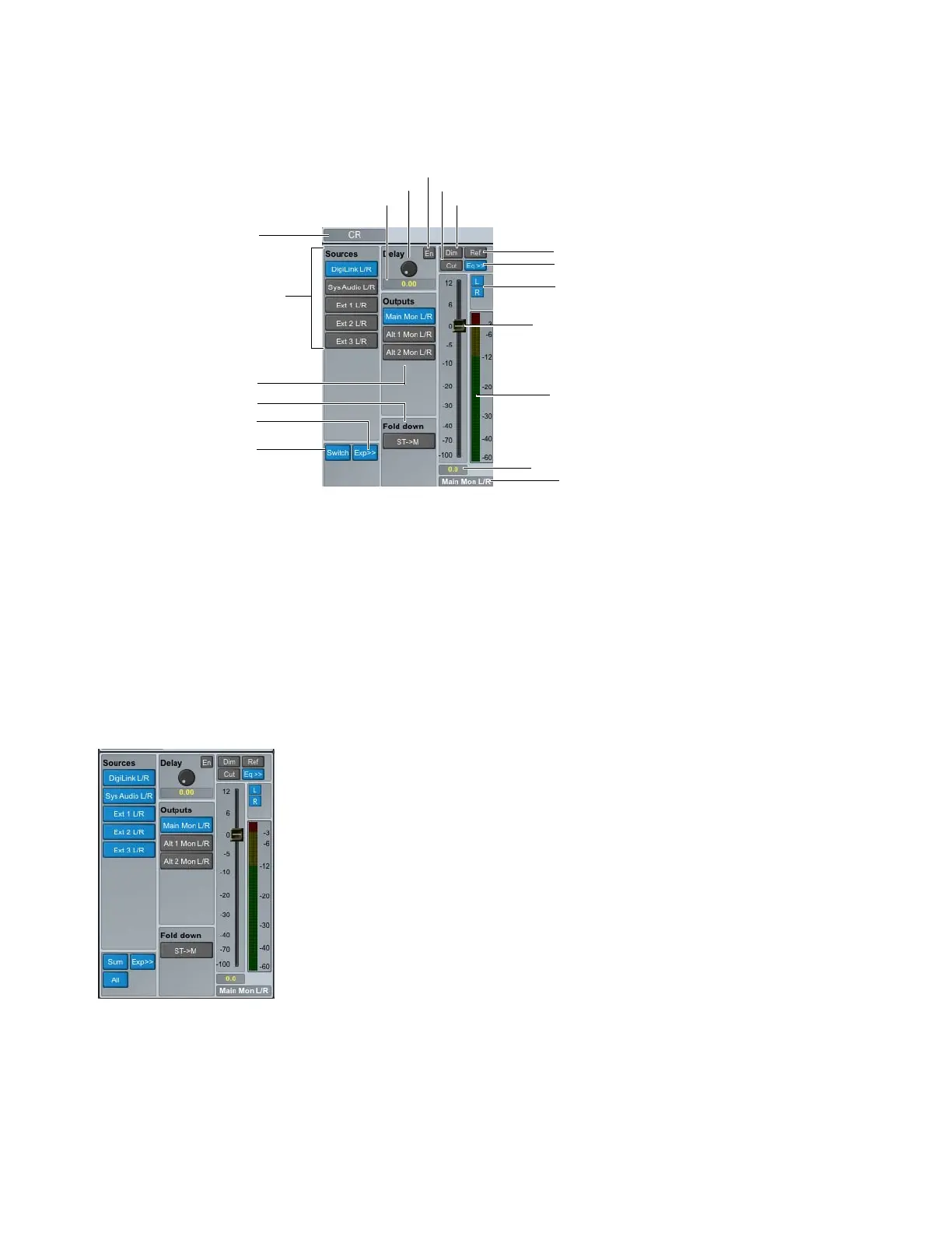 Click to toggle between switching between available sources or summing all selected sources. When Sum is enabled,