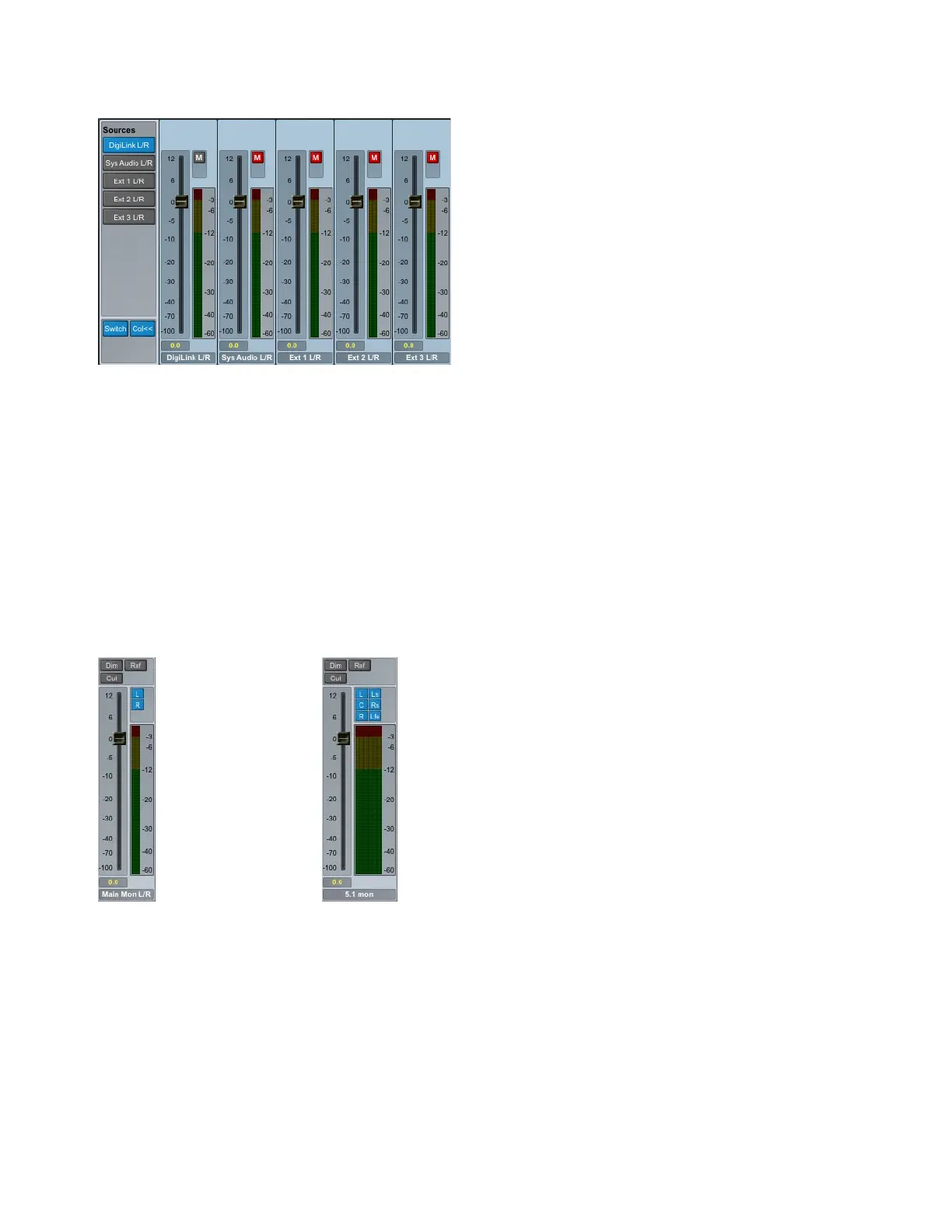 Monitor channel strip stereo (left); Monitor channel strip 5.1 (right)