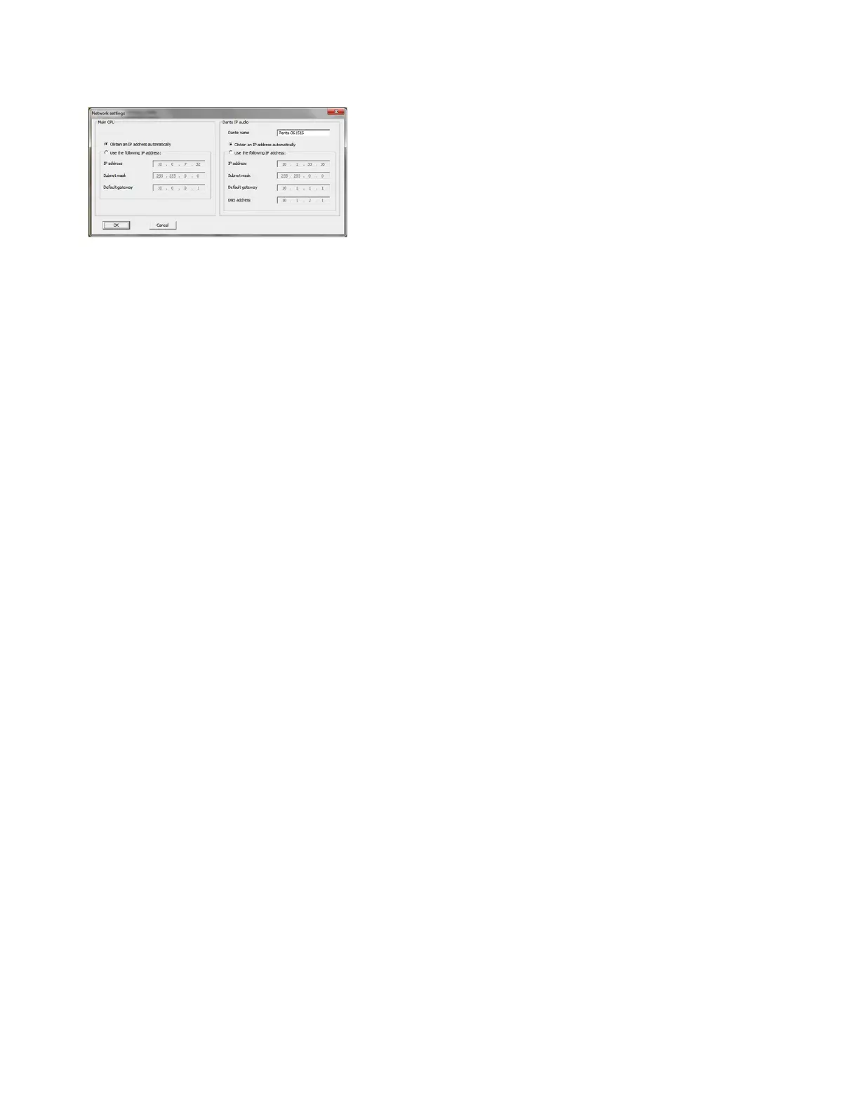 On the left-hand side you will find the network settings of the MTRX itself. On the right-hand side you will find the network settings