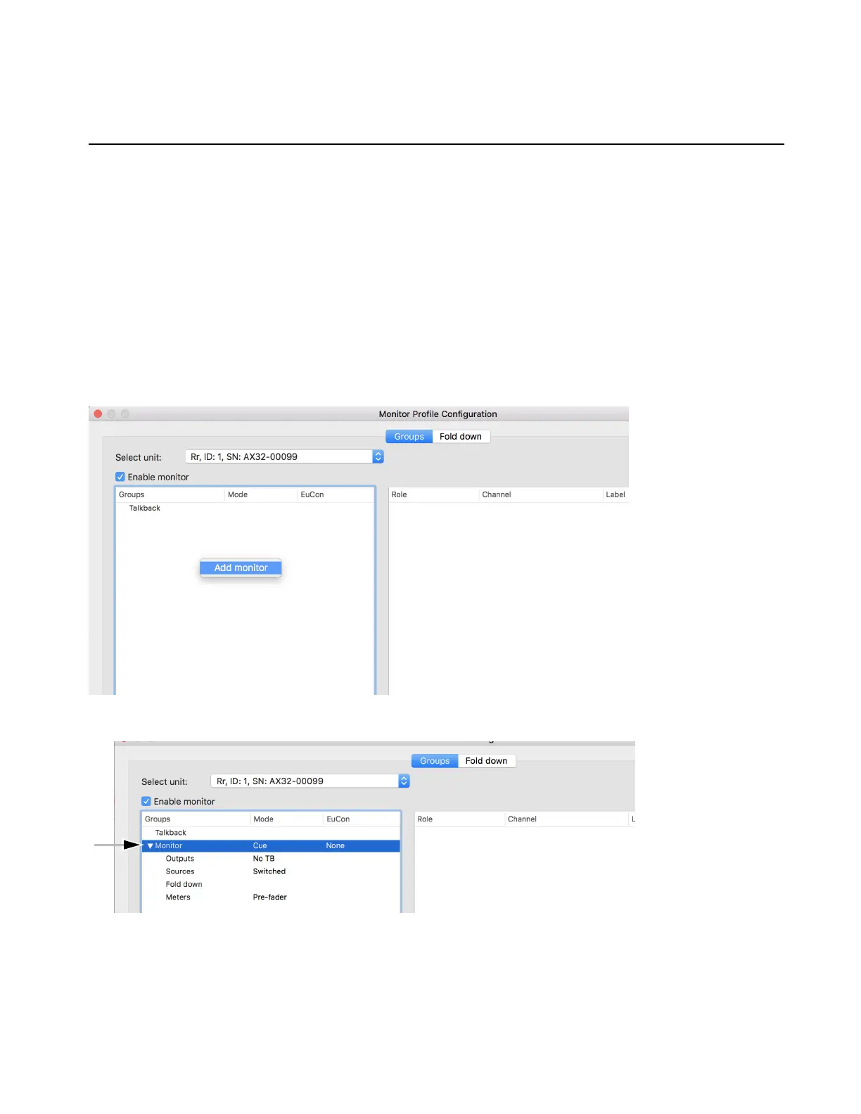 The following instructions show how to create a monitor profile and configure inputs, outputs, fold-downs, and other parameters in DAD-