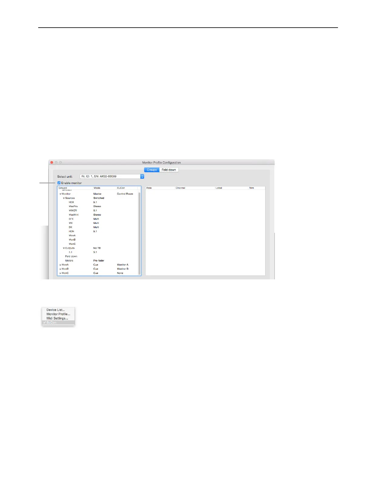 2 Choose Settings > Monitor Profile, then enable and create a monitor profile.