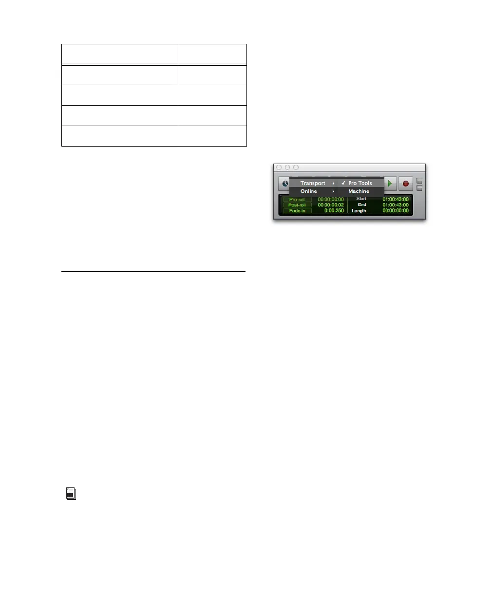 Pro Tools transport. Choices include Pro Tools