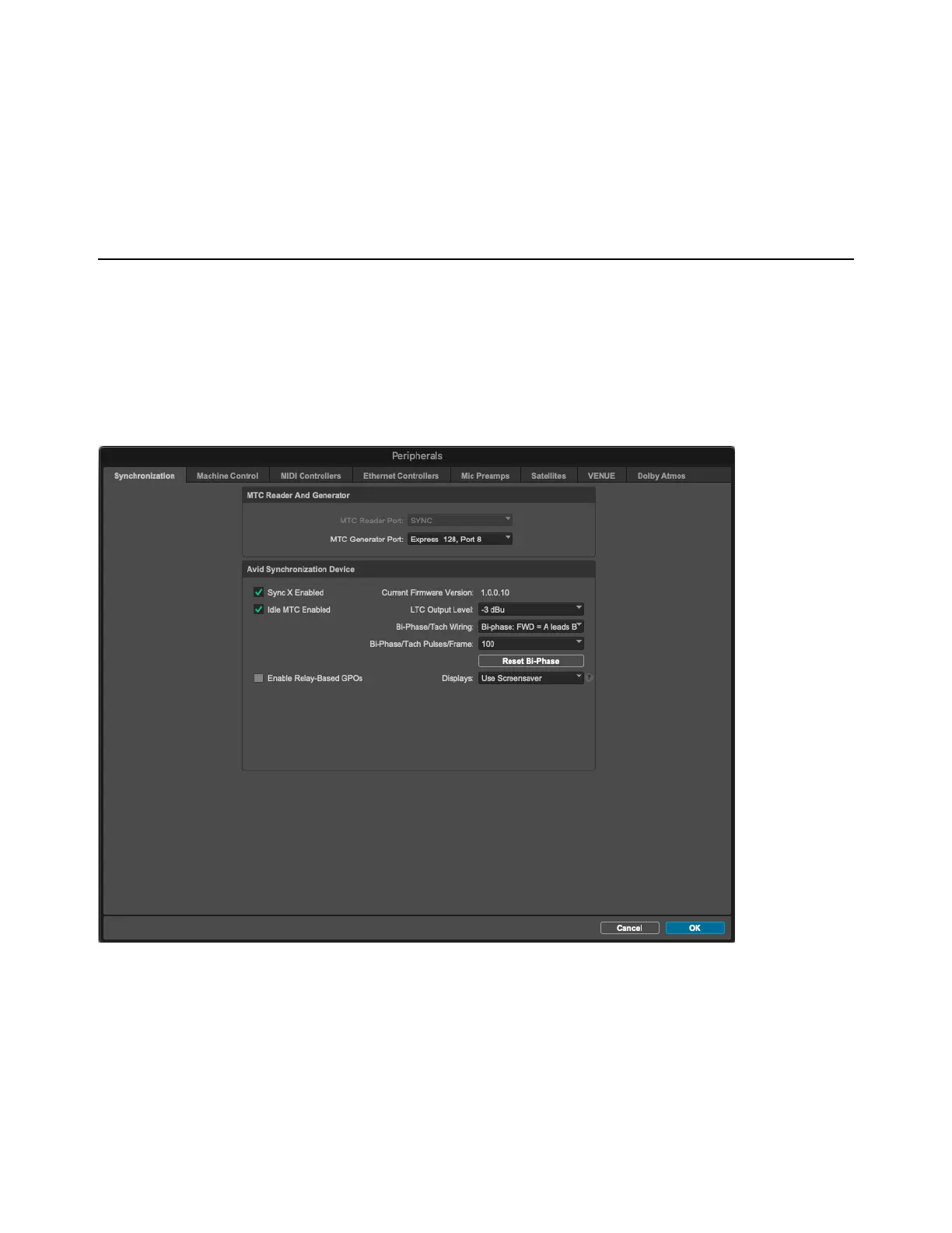 Pro Tools | Sync X Setup in the Peripherals Dialog