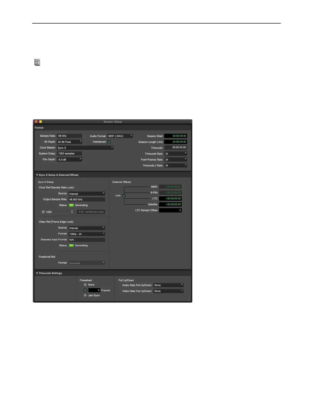 For complete information on the Session Setup window, see the Pro Tools Reference Guide.