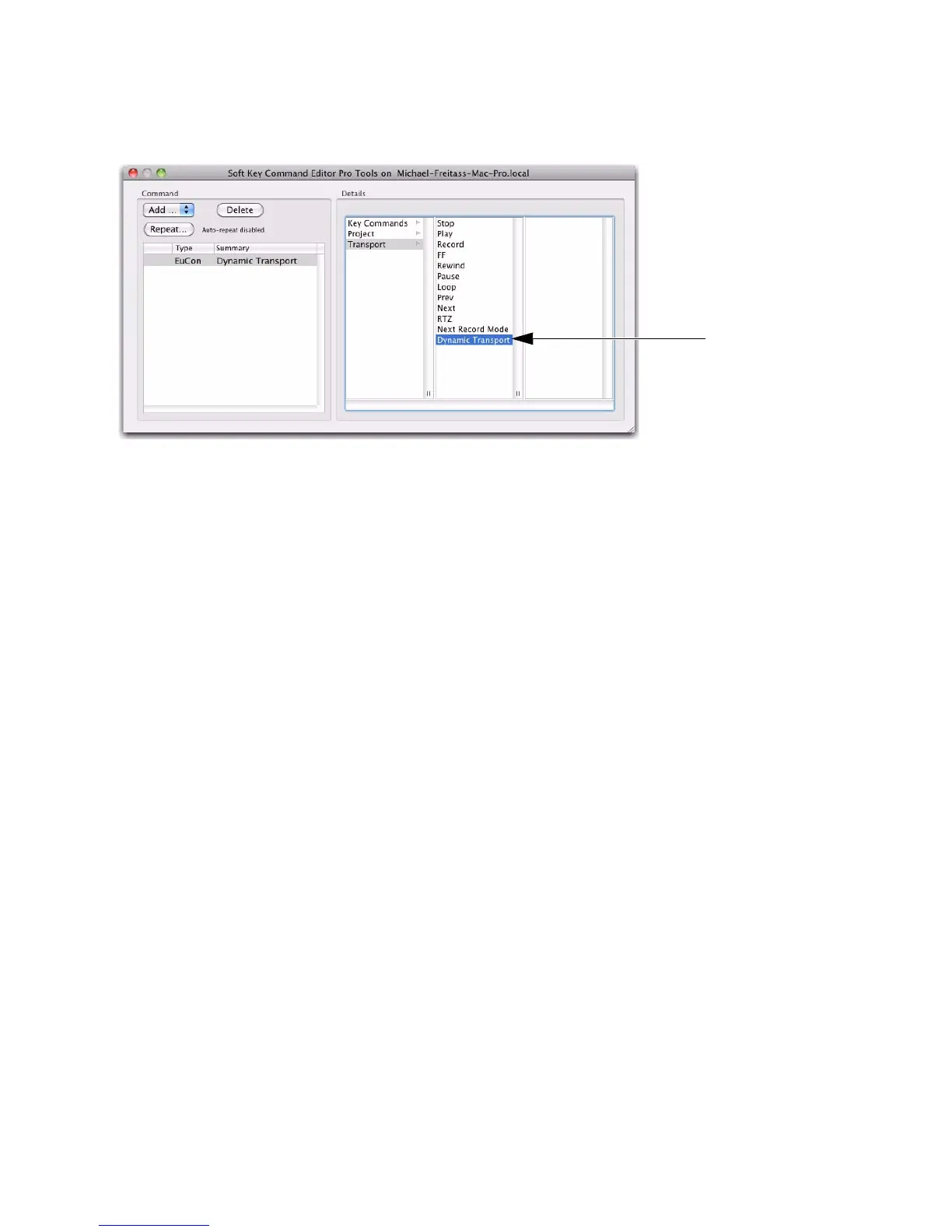 9 Click to select Dynamic Transport. The Command List updates to show the new assignment.
