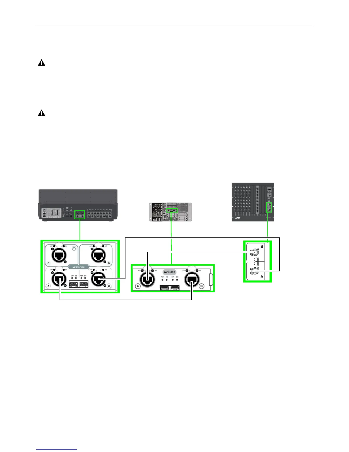 Do not connect network equipment such as routers, hubs and switches to any S6L system Network ports.