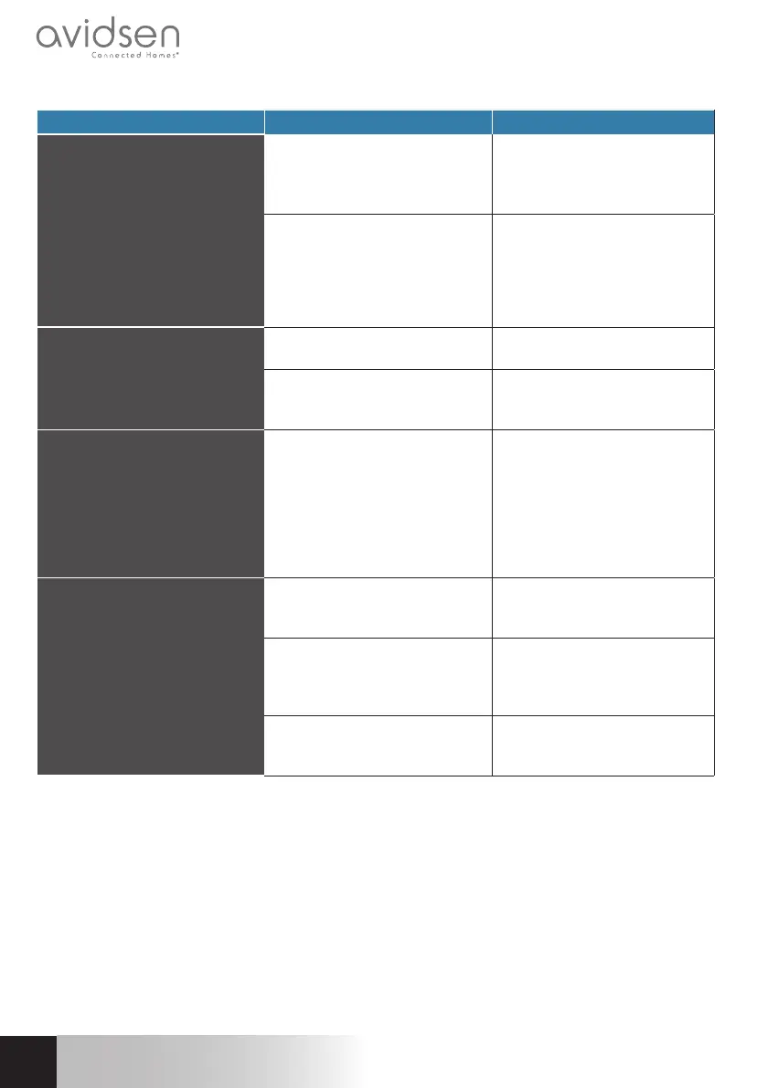 Symptoms Possible causes Solutions