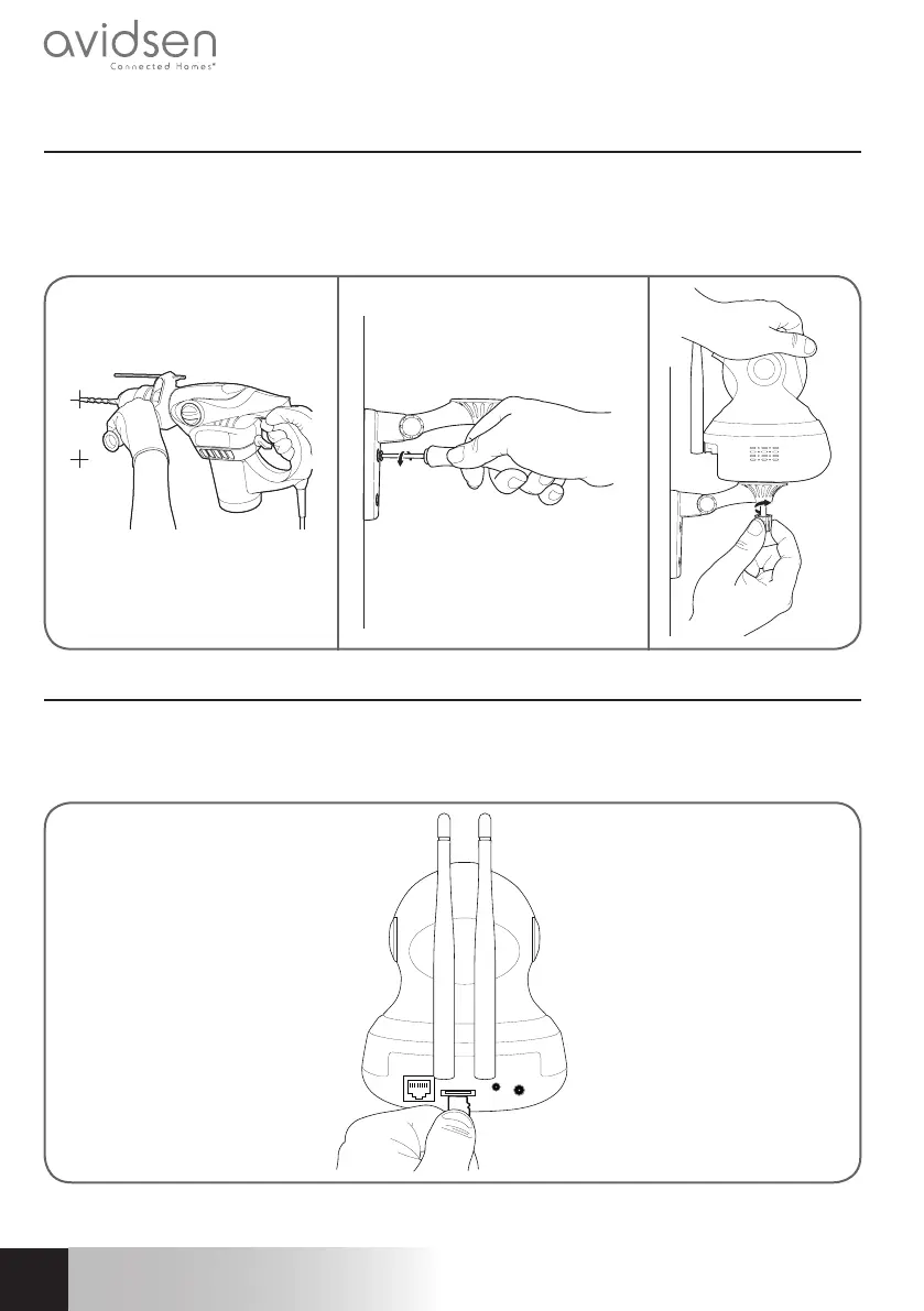 Fix the camera mount using screws and wall plugs suitable for the type of supporting surface (the screws