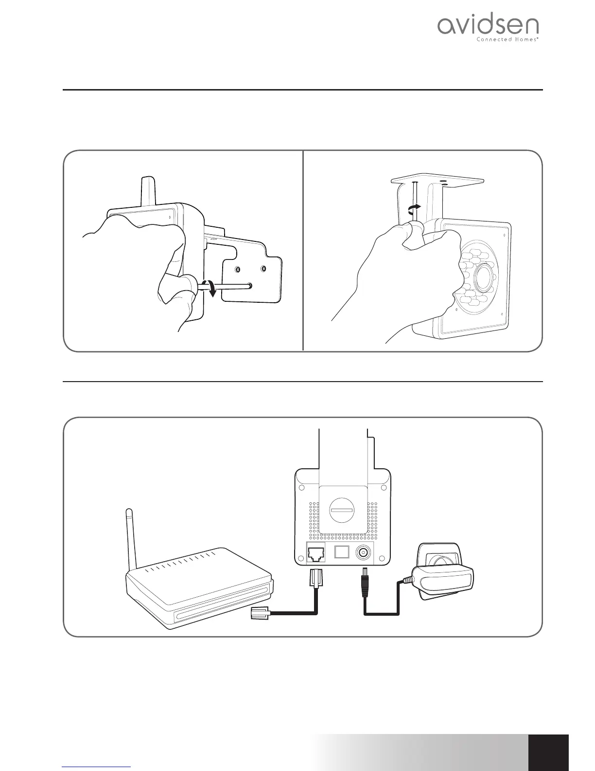 ConnectyourcameratotheADSL/breboxusingtheRJ45cableandconnectitspowersupply.