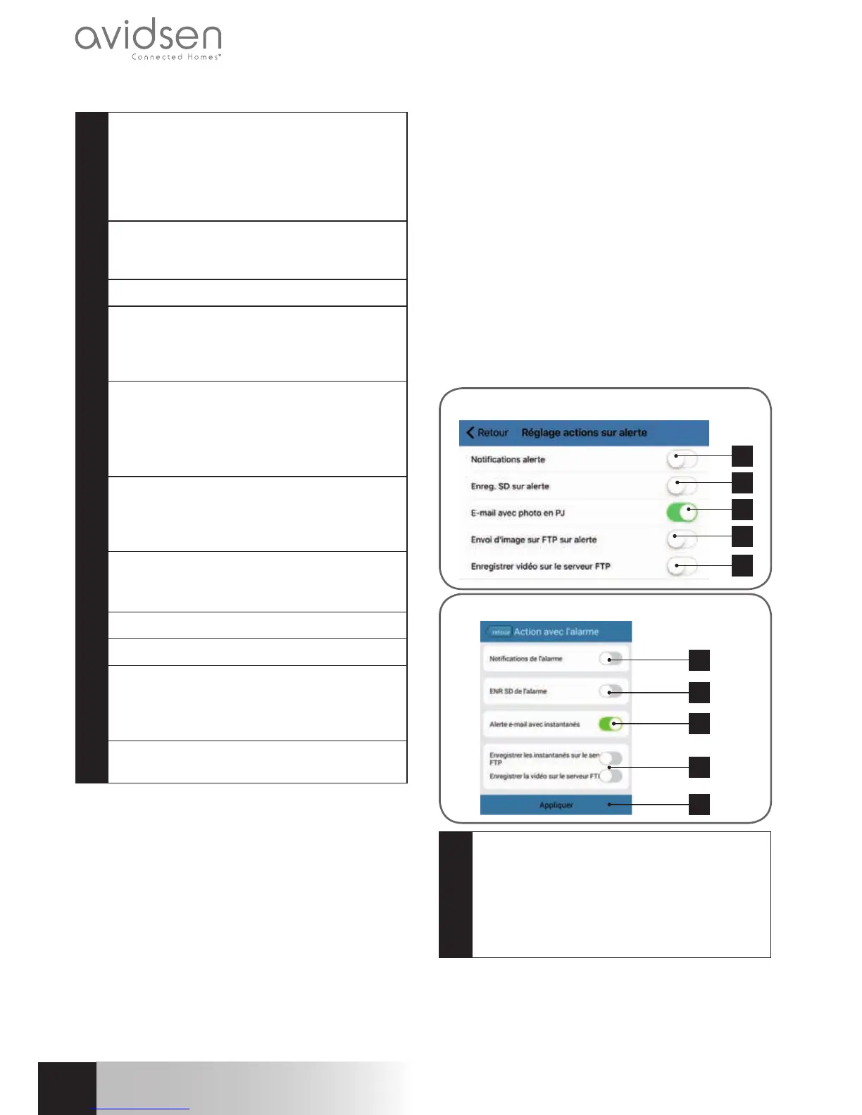 alerte" (Einstellung Aktionen bei Alarm) in der
