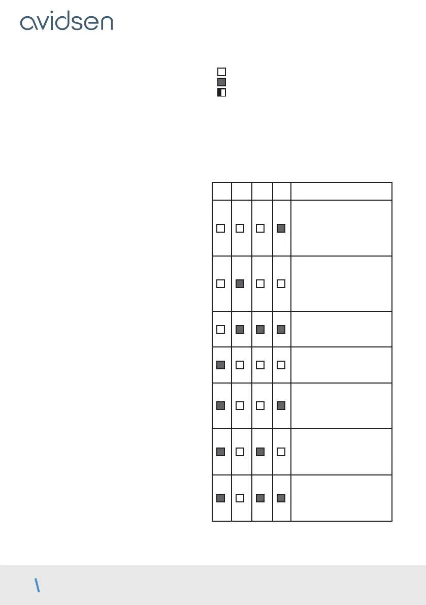 combination of red LEDs that are on / off /